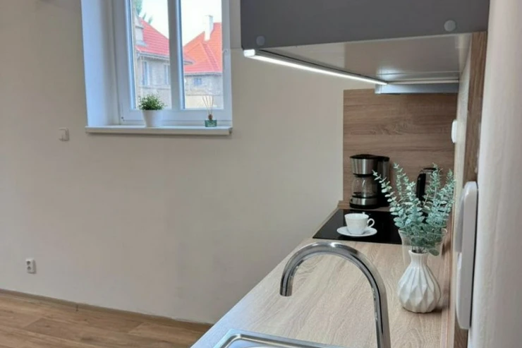 Dispozice bytu je velmi praktická – prostorná ložnice, obývací pokoj s kuchyňským koutem a koupelna se sprchovým koutem. Velkým benefitem je vlastní zahrada o rozloze cca 100 m², ideální pro odpočinek, grilování a posezení s rodinou či přáteli. Na zahradě je vybudované kryté posezení, které poskytuje příjemný stín i zázemí v horkých letních dnech.