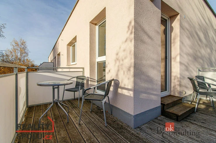 Druhý menší balkon, je přístupná z hlavní ložnice, která disponuje vlastní koupelnou a samostatnou šatnou – ideální řešení pro každého, kdo si potrpí na soukromí a komfort.