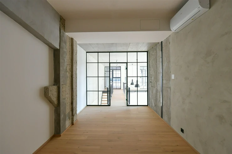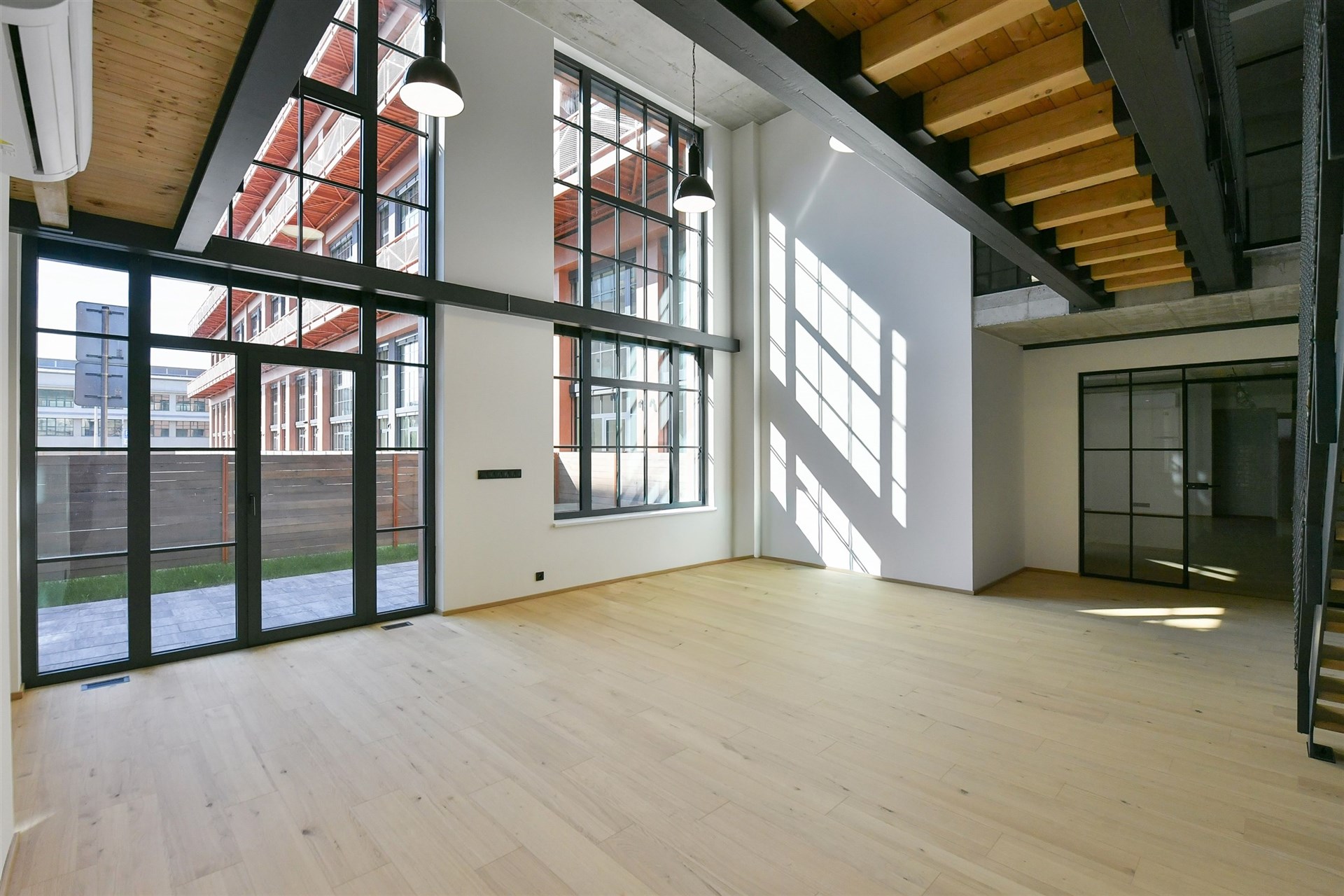 large-format soundproof windows referencing the site’s industrial past