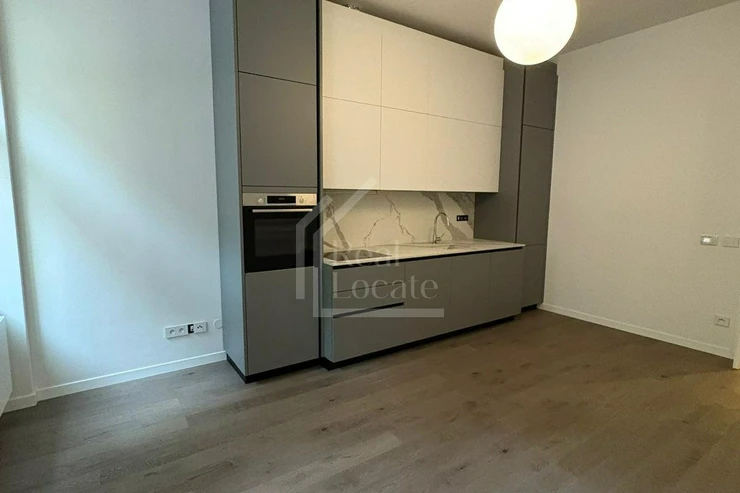 The interior features high ceilings, large casement windows, and quality wooden floors that add character and elegance. The apartment is offered unfurnished, with high-end bathroom fittings and premium finishes throughout.