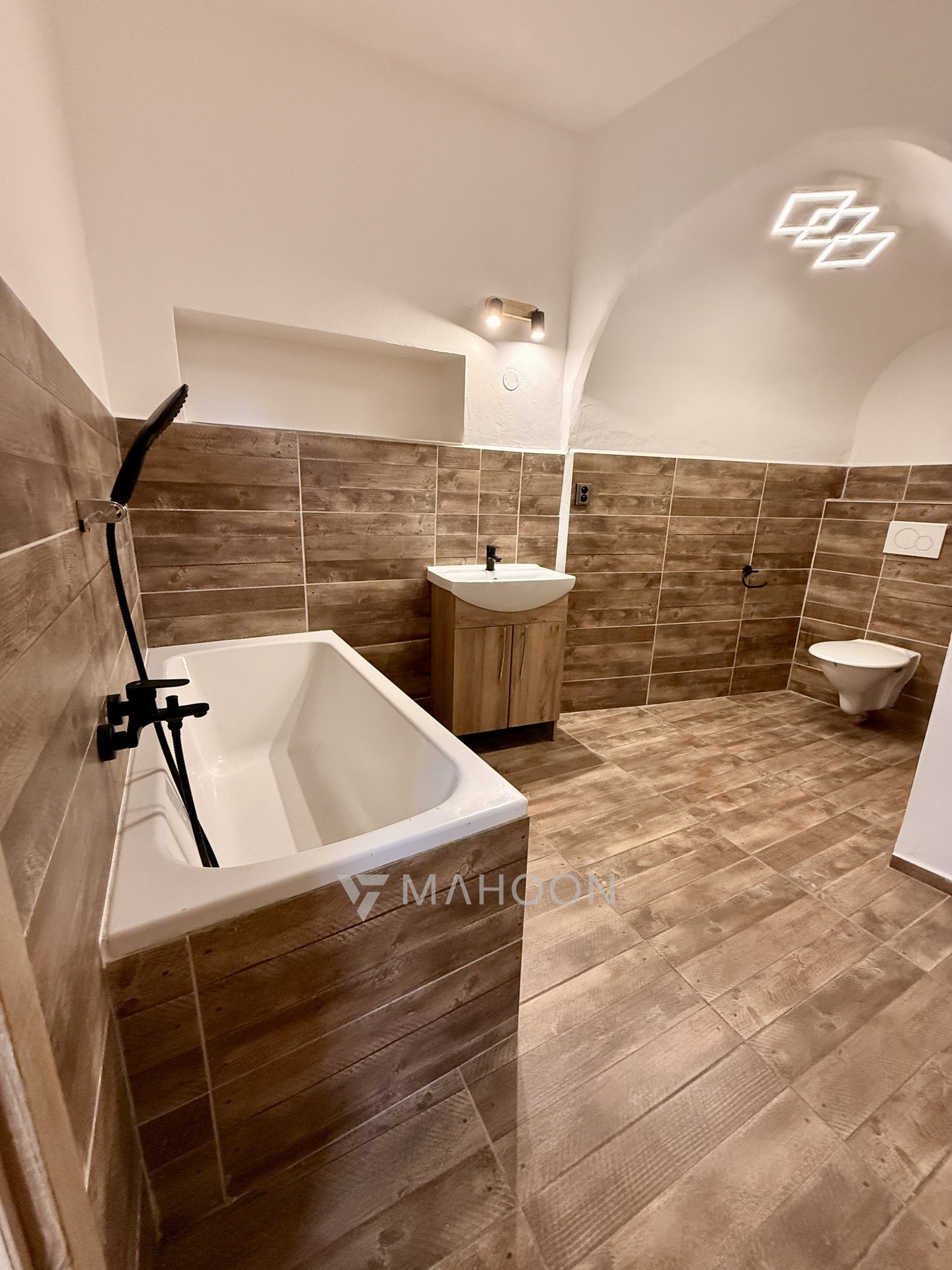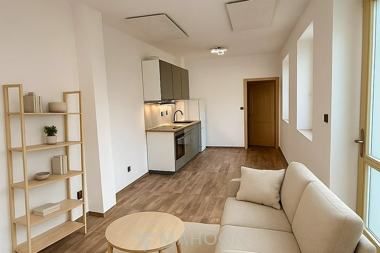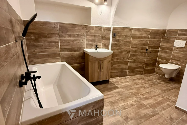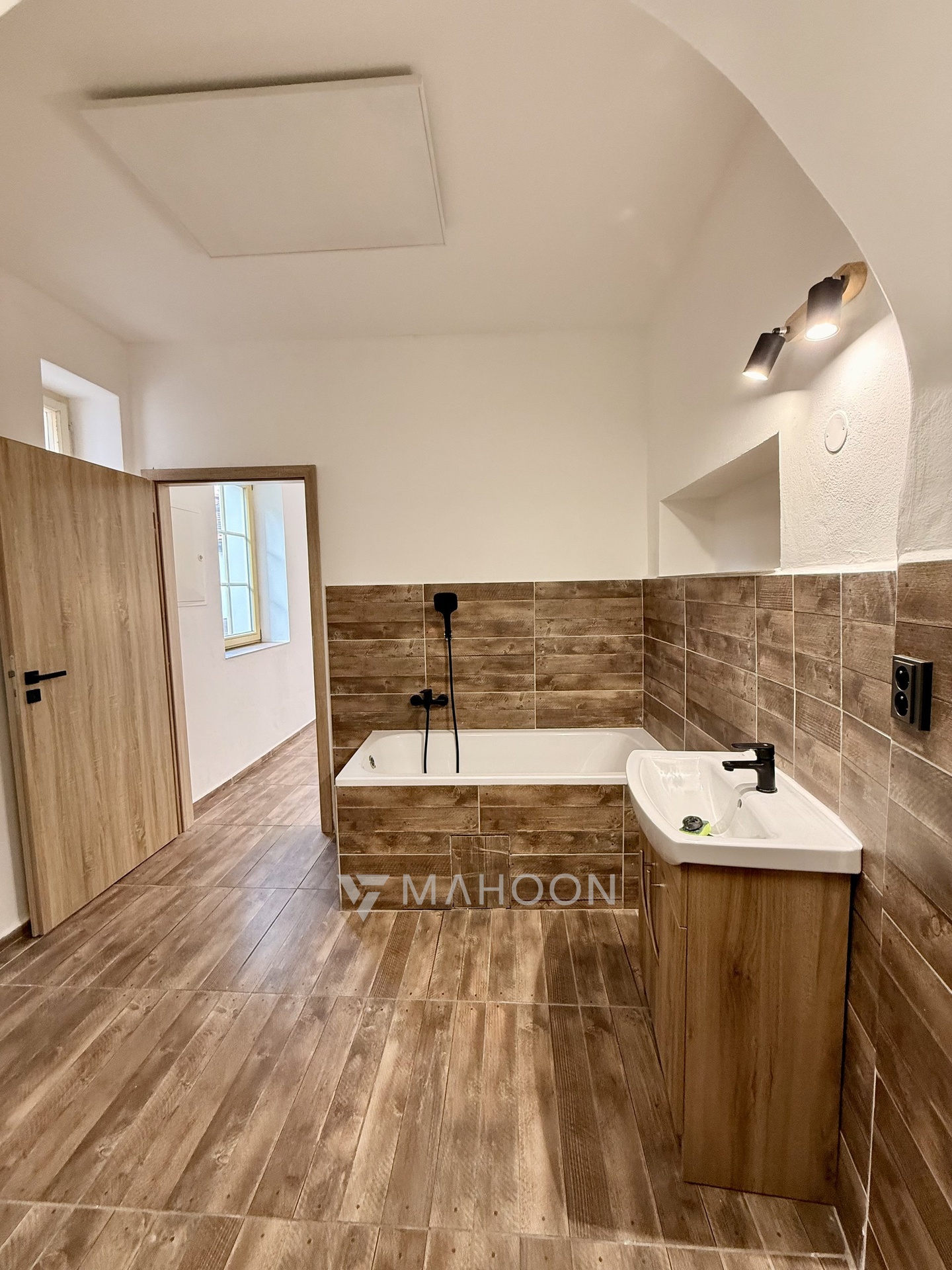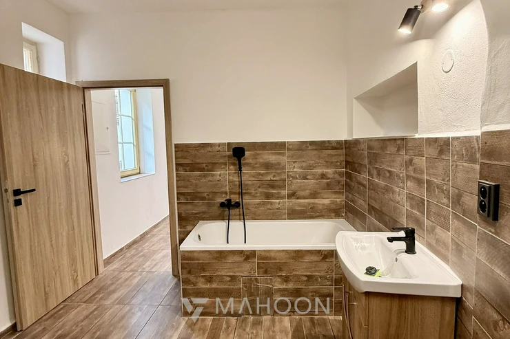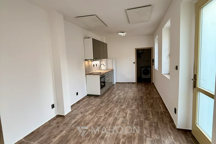 Nabízíme nově zrekonstruovaný byt 2+kk o velikosti 43 m² v přízemí historického cihlového domu v ulici Kynského ve Slaném, jen pár minut od centra města.