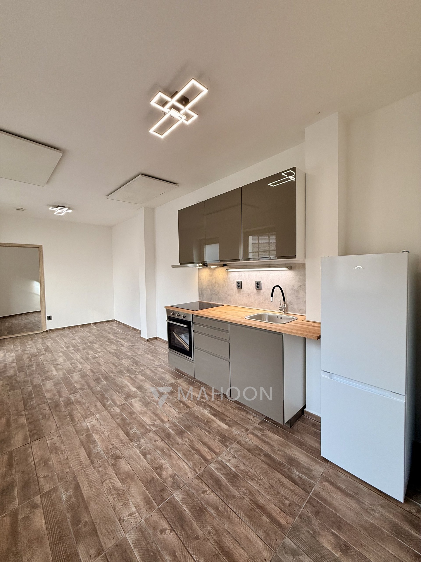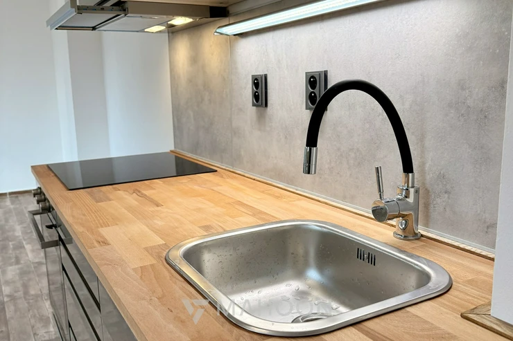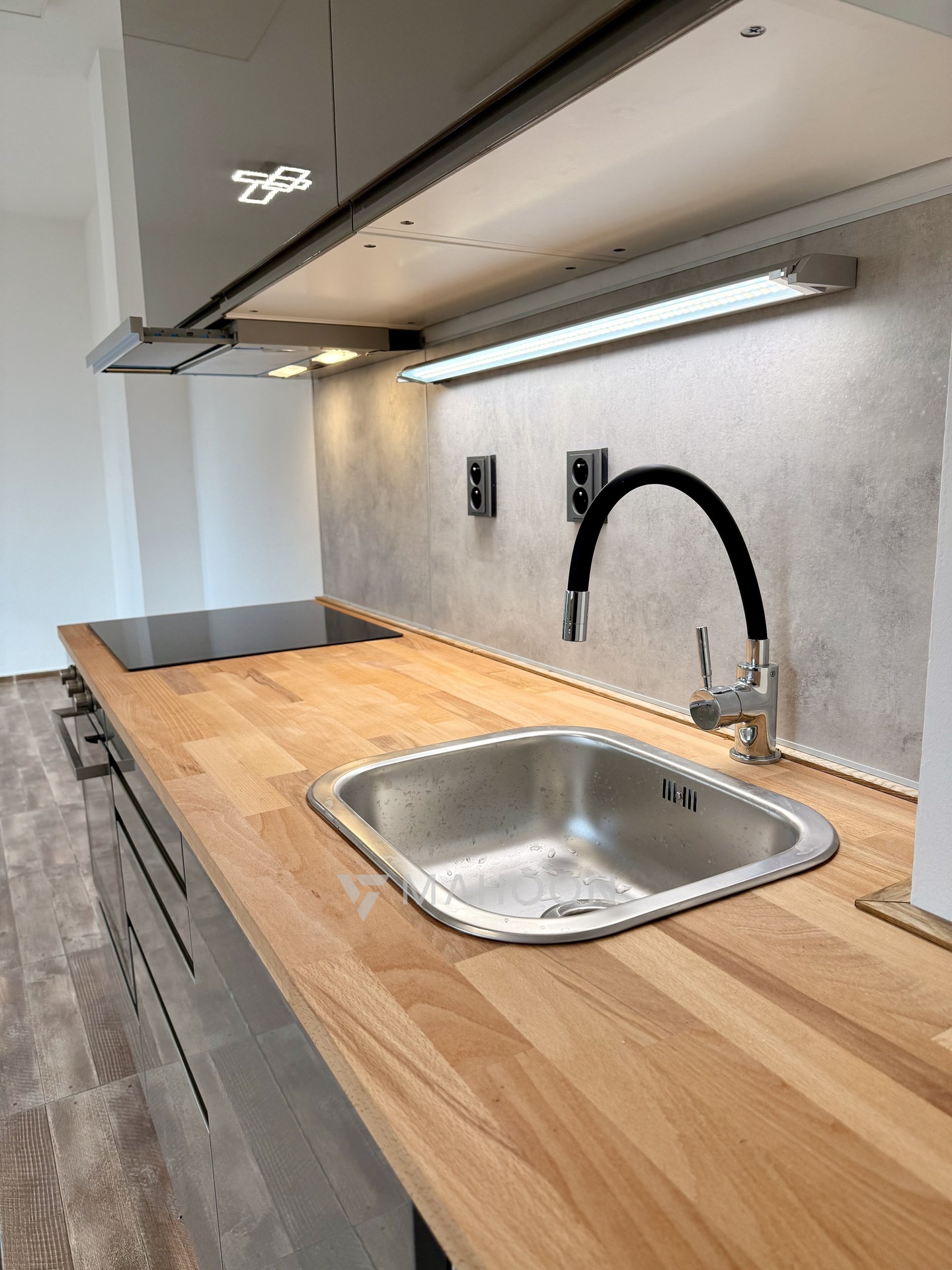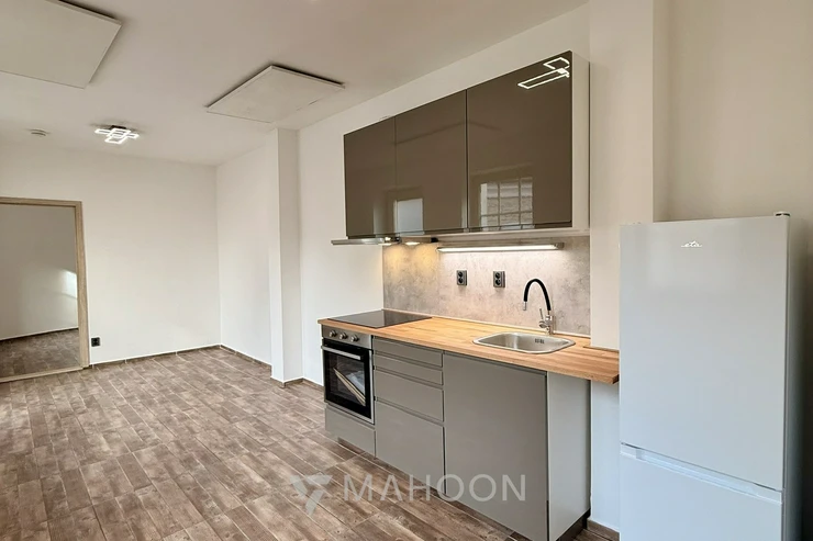 Byt o dispozici 2+kk s podlahovou plochou 43 m2 bude předáván s novými podlahami a osvětlením. Vybaven bude novým kuchyňským koutem se spotřebiči (varná deska, trouba, digestoř, lednice) a koupelnou s vanou, bojlerem a pračkou.