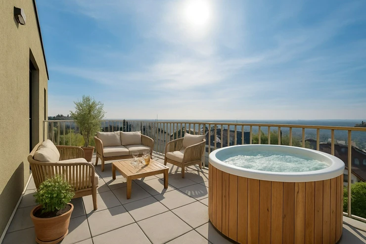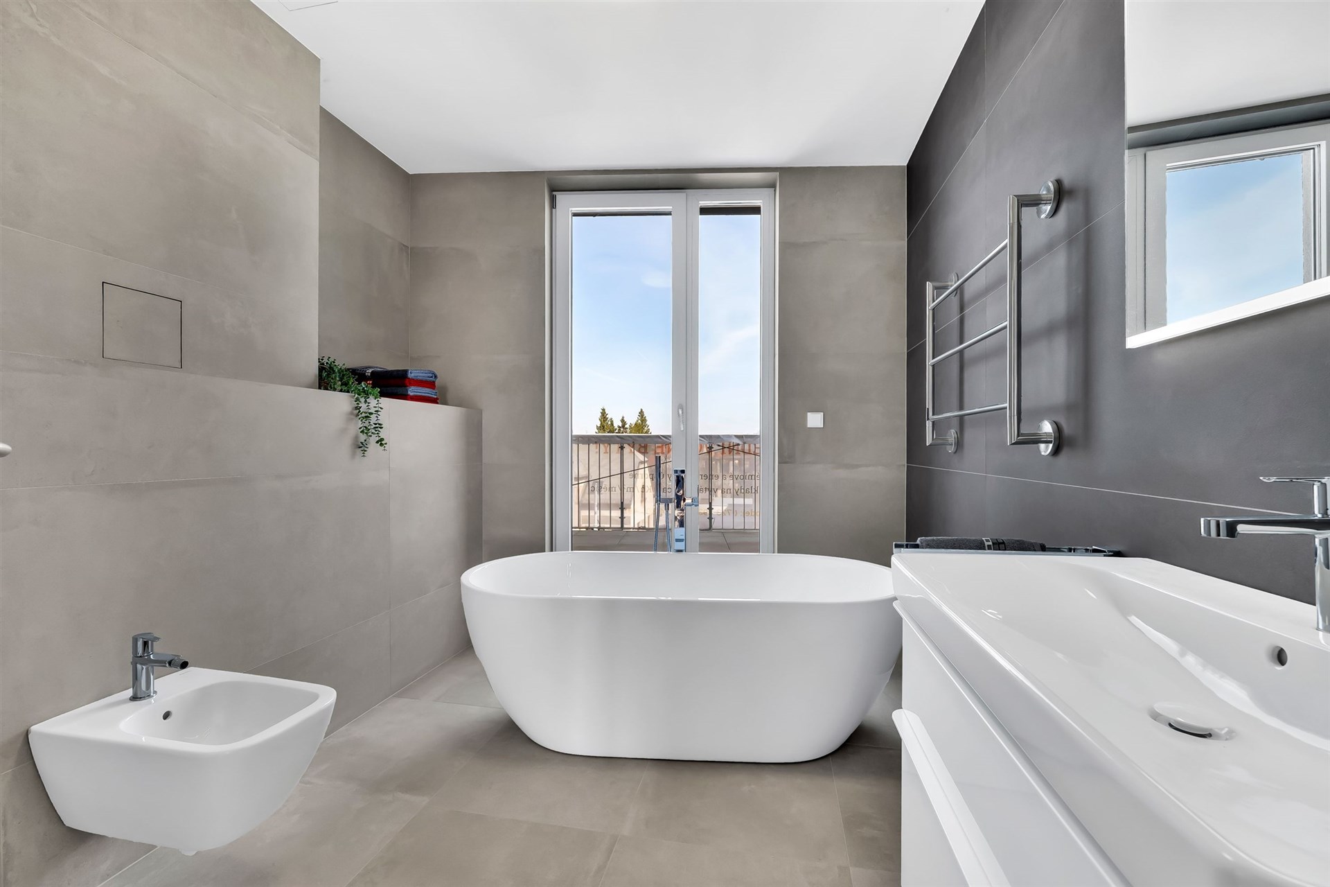 2 terraces + 2 bathrooms + pantry + spacious hallway for wardrobe + French large-format windows throughout the apartment + air conditioning + heat recovery + comfortable parking in the garage + large cellar