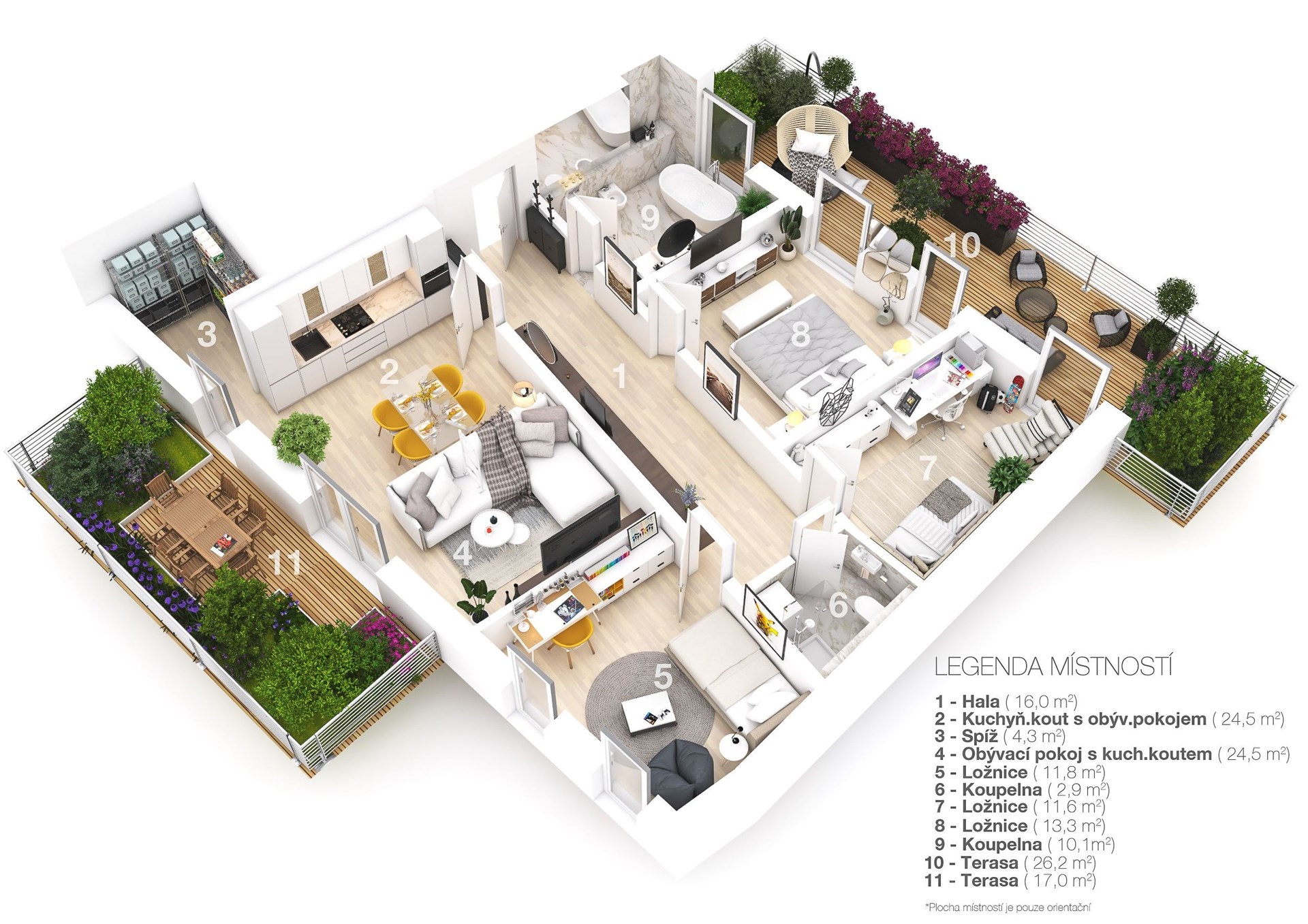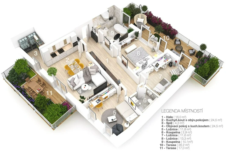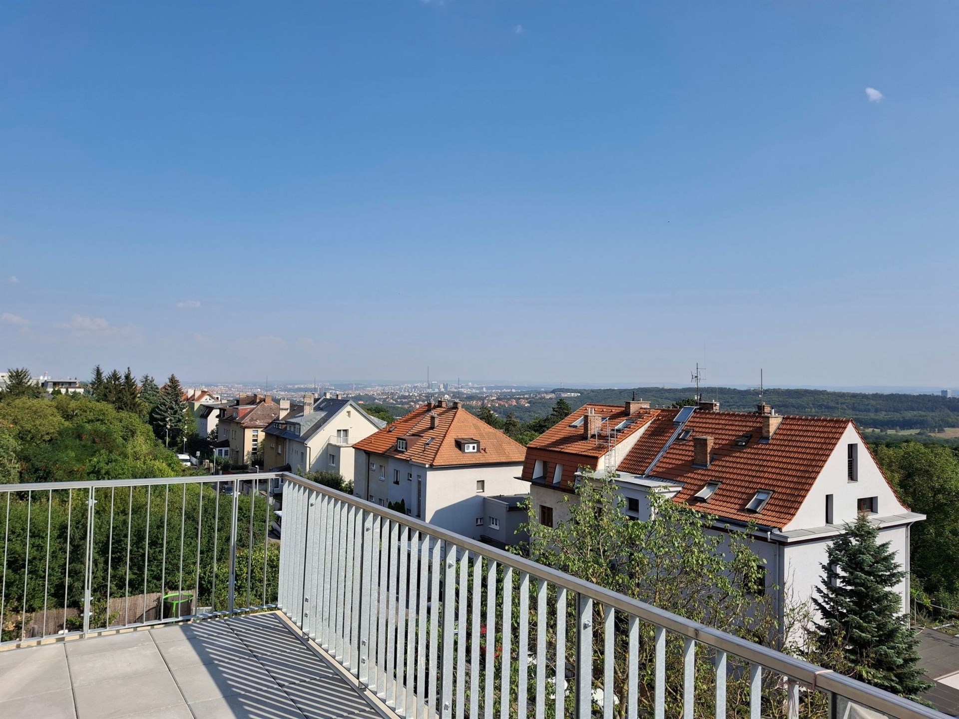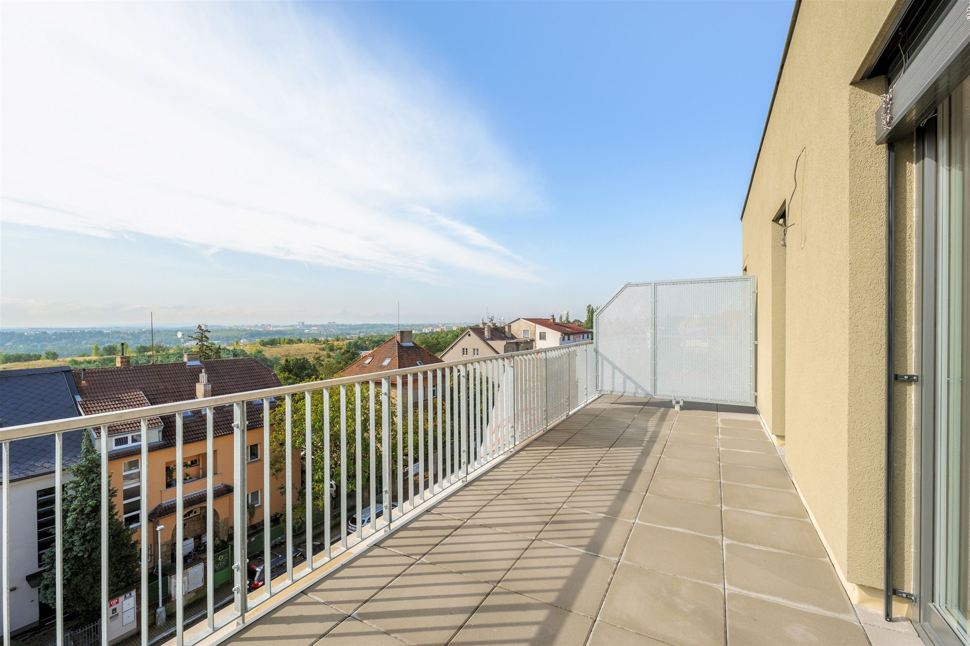 The "Penthouse" with a 4+kk layout is located in a quiet green area with excellent accessibility to the city center, the Prague ring road, and the international airport. Nearby parks (e.g., Ladronka, Obora Hvězda), schools, shops, the Petynka swimming pool, and a large number of stores are integral parts of the locality.