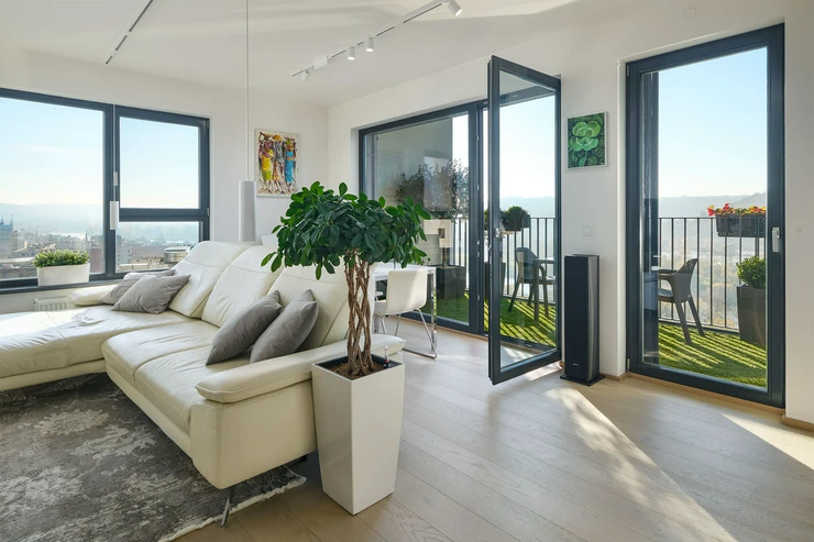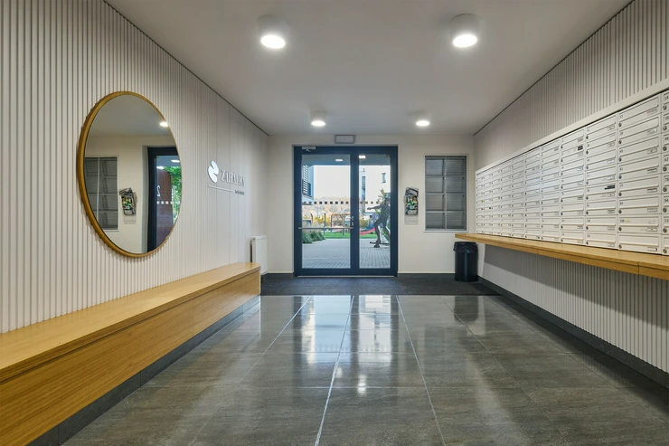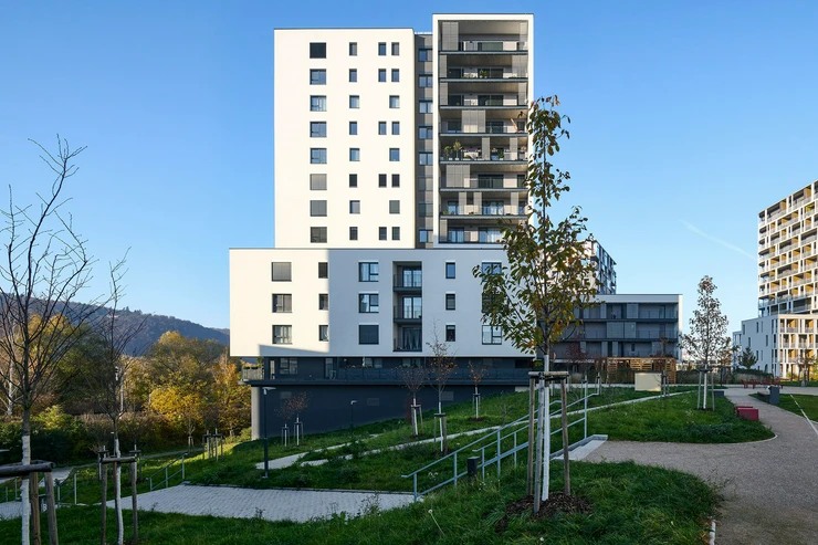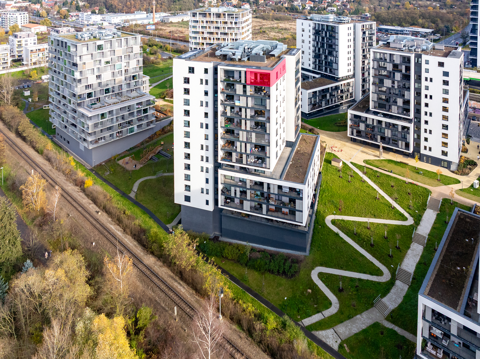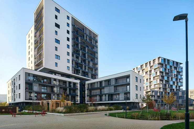 Here, however, it's different. At the top of the Zahálka development, the golf course is right below you on one side, with a tram stop just a few steps away on the other. It's the best of both worlds — nature and the city without compromise.