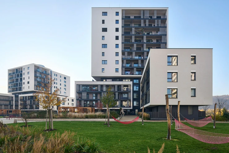 The Zahálka project offers everything that makes life pleasant, including playgrounds, bike paths, river-side trails, a golf course, and the Modřanská rokle nature reserve.