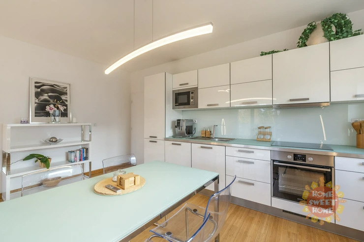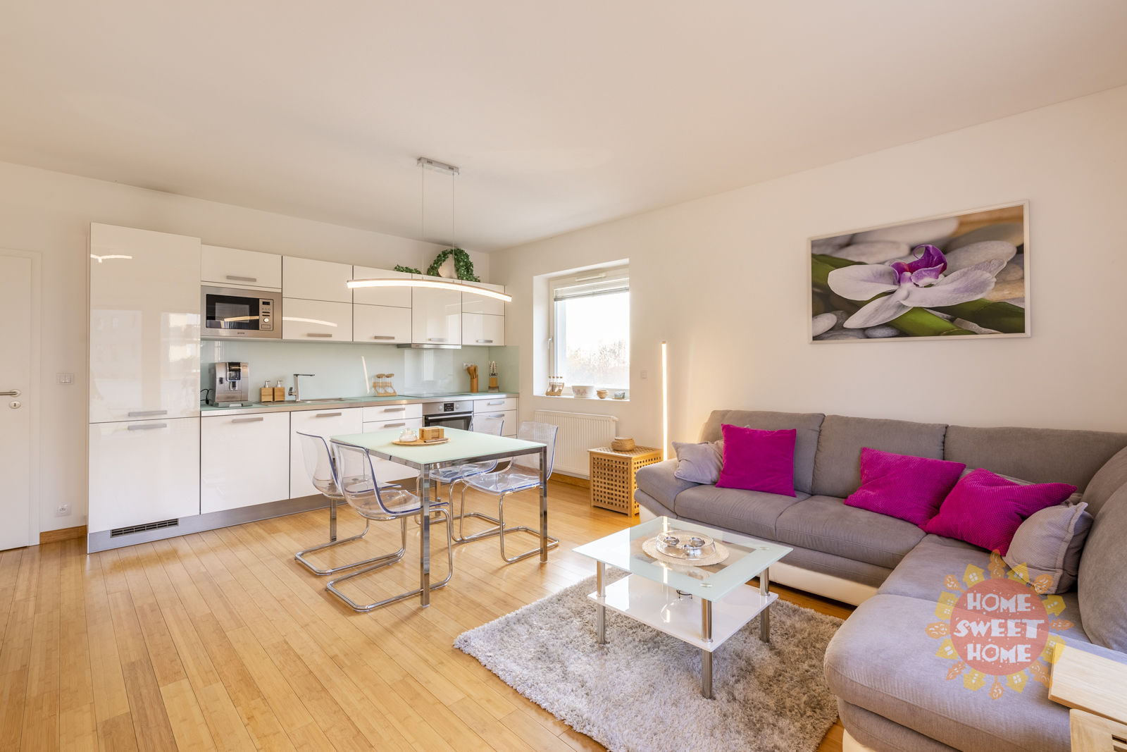We offer for sale a modern 3+kk apartment in private ownership with a total usable area of 78.70 m² with a balcony (5 m²), cellar (3.30 m²) and garage parking space. The apartment is located on the second floor of a new building in the intimate residential project Viladomy Na Vidouli from 2016 on Klečkova Street in Prague 5 - Stodůlky. The advantage of the location is quiet and safe living with a private park in an enclosed area.