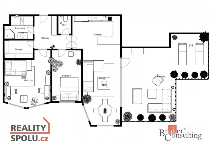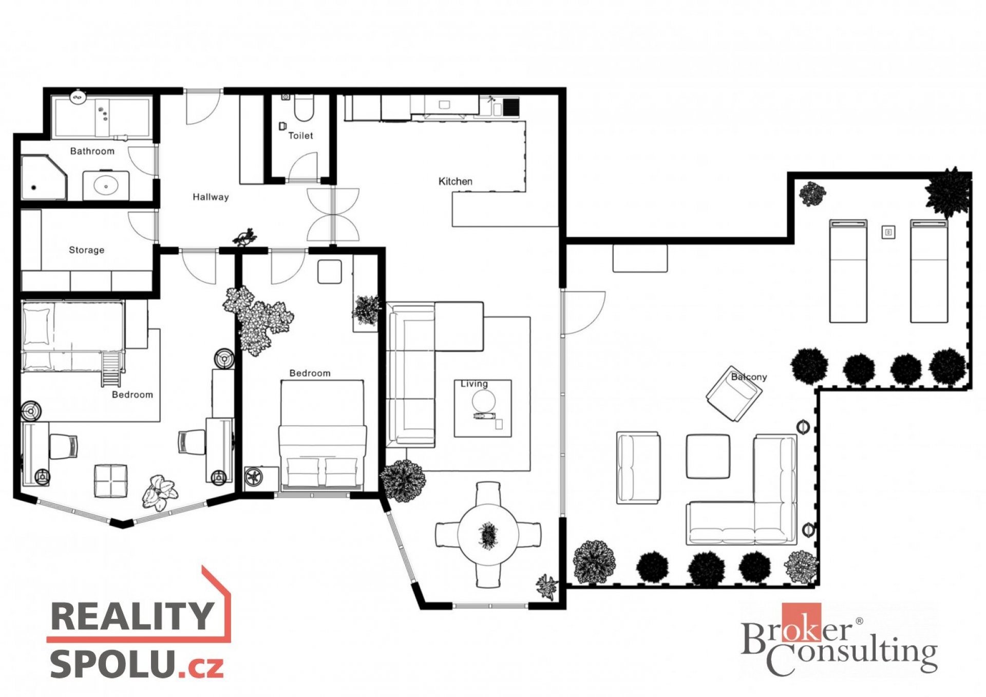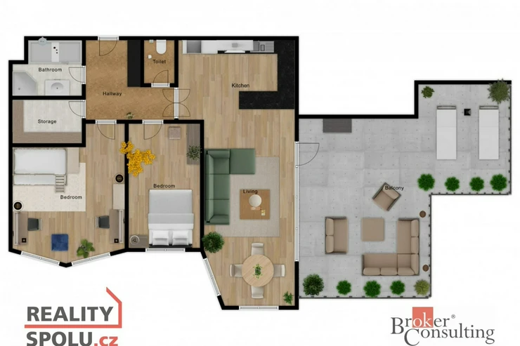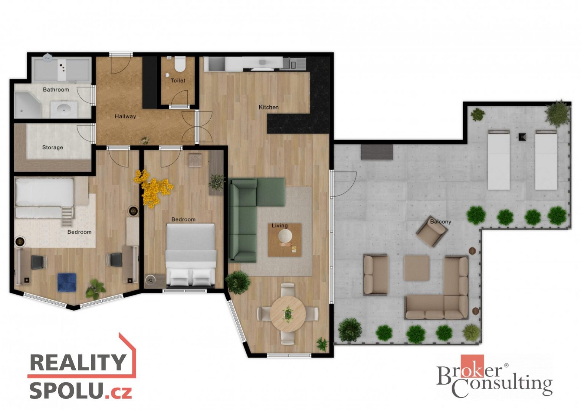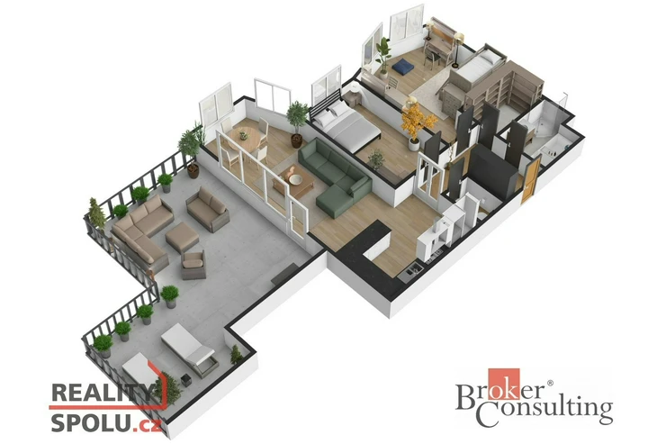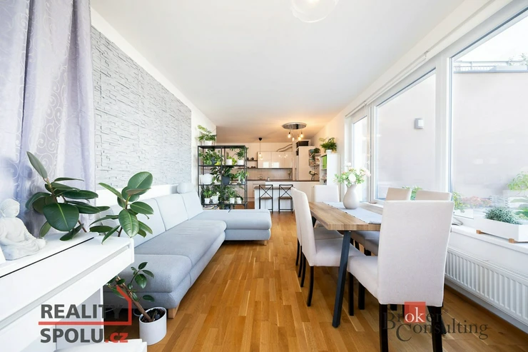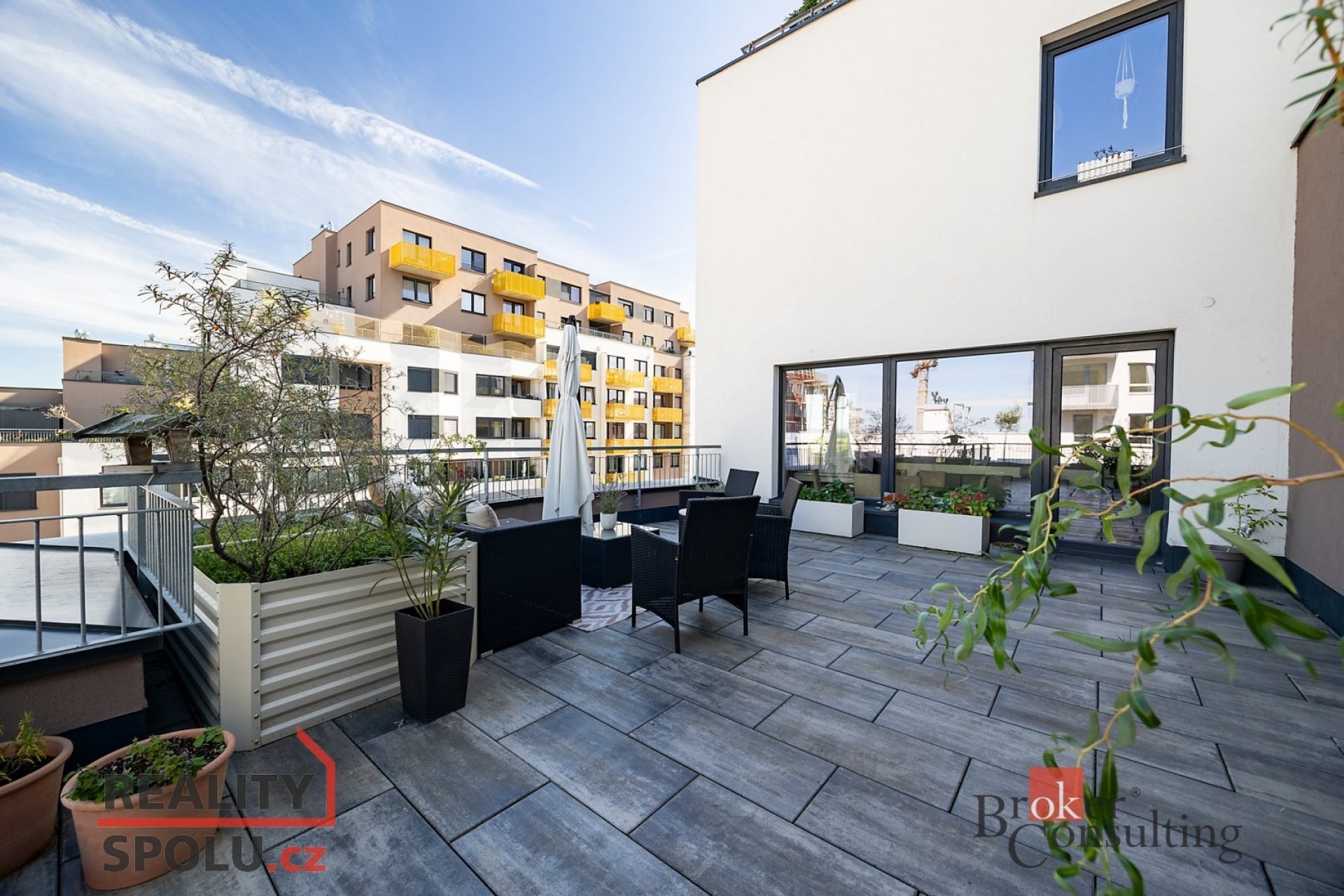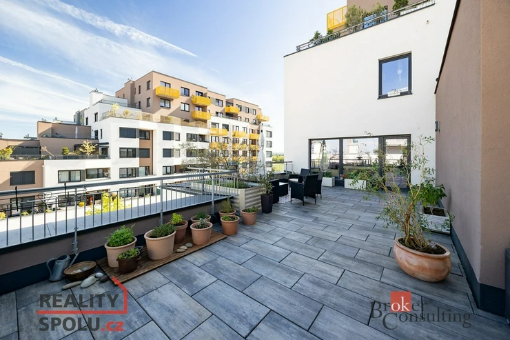 Dominantou bytu je terasa o ploše 55 m², která z něj činí naprosto výjimečnou nabídku. Díky své velikosti poskytuje prostor pro plnohodnotnou venkovní jídelnu, relaxační zónu i zeleň – jednoduše soukromou oázu uprostřed města.