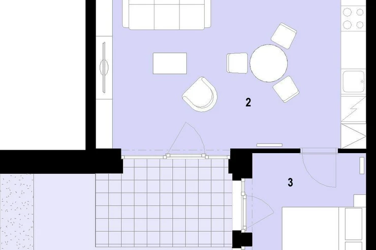 Unit no. 1101 with a one-bedroom layout and a total area of 68.3 m² on the 1 floor will offer you a harmonious space for living, whether you are looking for your own apartment or are a couple starting a joint chapter. The airy living room with a kitchenette freely flows into the bedroom, which is complemented by an elegant bathroom with a shower and toilet. Thanks to its orientation to the S, W, the apartment enjoys an ample amount of natural light. The unit includes a front garden, perfect for enjoying your morning cup of coffee in the fresh air or growing herbs. A cellar and a parking space must be purchased for each unit. The apartment will be ready to move into immediately with finished floors, a fitted bathroom, and a space for a kitchen unit. Standards include high quality materials, triple-glazed windows, and in selected units, preparation for outdoor shading.