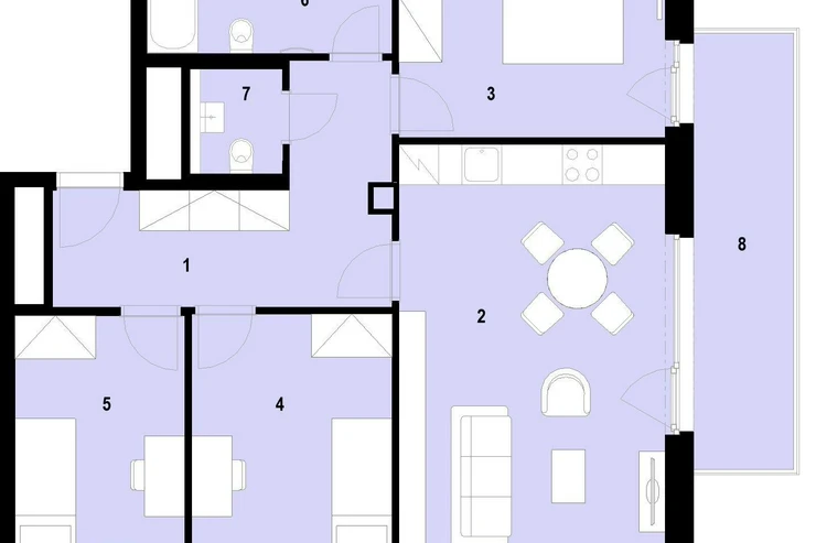Unit no. 1805 with a three-bedroom layout and an area of 92.3 m² on the 8 floor is an apartment that will become your real home. Three separate bedrooms will provide privacy for each member of the household. The spacious living room with a kitchenette is the center of events, where every day experiences are created, from family breakfasts to evening movie screenings. Comfort is ensured by a modern bathroom and a separate WC. Thanks to its orientation to the S, E, the apartment is flooded with light and pleasantly lit throughout the day. There is also a balcony of 10.6 m² - an ideal place for enjoying summer meals or relaxing in the evening. The apartment will be ready to move into immediately with finished floors, a finished bathroom, and space for your dream kitchen. Standards include high quality wooden floors, triple-glazed windows, and in selected units, preparation for outdoor shading.