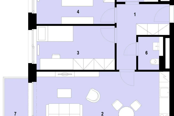 Unit no. 1216 with a two-bedroom layout and a total area of 75.6 m² combines practicality, style, and comfort. The dominant feature of the apartment on the 2 floor is a large living room with a kitchenette, which directly invites you to meet, cook, and relax. Two separate bedrooms provide space for peaceful sleeping, a study, or a children's room. The bathroom is equipped with a modern shower and there is also a separate WC for maximum comfort in everyday life. Thanks to its orientation to the S, W, the interior is bright, pleasant and has an airy feel. The unit includes a balcony with an area of 5.3 m², ideal for relaxing evenings or for enjoying breakfast in the fresh air. The apartment will be ready to move into immediately with finished floors, a fitted bathroom, and a space for a kitchen unit. Standards include high quality materials, triple-glazed windows, and in selected units, preparation for outdoor shading.