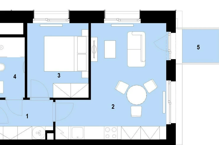 Unit no. 2301 with a one-bedroom layout and a total area of 44.4 m² on the 3 floor will offer you a harmonious space for living, whether you are looking for your own apartment or are a couple starting a joint chapter. The airy living room with a kitchenette freely flows into the bedroom, which is complemented by an elegant bathroom with a shower and toilet. Thanks to its orientation to the N, E, the apartment enjoys an ample amount of natural light. The unit includes a balcony, perfect for enjoying your morning cup of coffee in the fresh air. A cellar and a parking space must be purchased for each unit. The apartment will be ready to move into immediately with finished floors, a fitted bathroom, and a space for a kitchen unit. Standards include high quality materials, triple-glazed windows, and in selected units, preparation for outdoor shading.