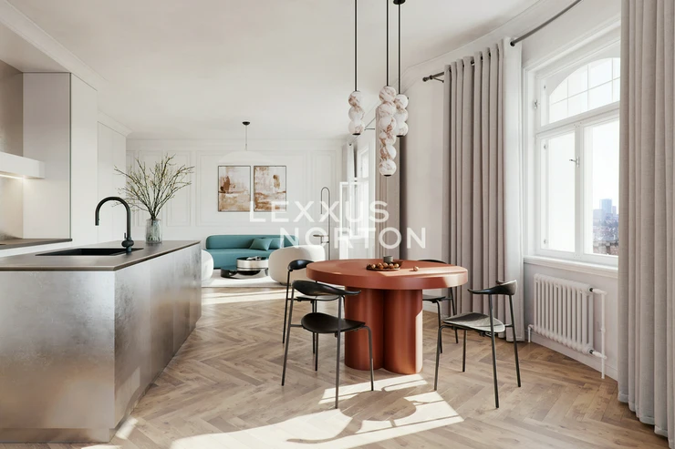 We present a bright one-bedroom apartment with a floor area of 44.60 sqm, located on the 5th floor of a completely renovated Art Nouveau residence. The layout offers a practical entrance hall, which leads to a corridor with access to a bathroom with a bathtub and two separate rooms – a living room with a kitchenette and a bedroom.Living room provides a pleasantly structured space for the day area and kitchen, and thanks to its orientation towards the street, it is sufficiently bright throughout the day. The bedroom is connected to the quieter part of the layout and offers a comfortable space for everyday relaxation.The corner Art Nouveau building has undergone a complete and sensitive renovation, preserving original architectural details in the common areas. A new elevator ensures convenient access to all floors. The project is completed and the apartment is ready for immediate occupancy.Oak parquet floors, wooden double windows, bathroom fitted with quality sanitary ware, gas boiler room in the basementResidence Norska is located in a corner building at the intersection of Kodanska and Norska streets, directly opposite Heroldovy Sady park. The area offers a perfect combination of historic charm and modern city living — with stylish cafés, restaurants, cultural venues, and all civic amenities of Prague’s wider city center just steps away. Thanks to excellent transport connections, the city center can be reached within minutes.