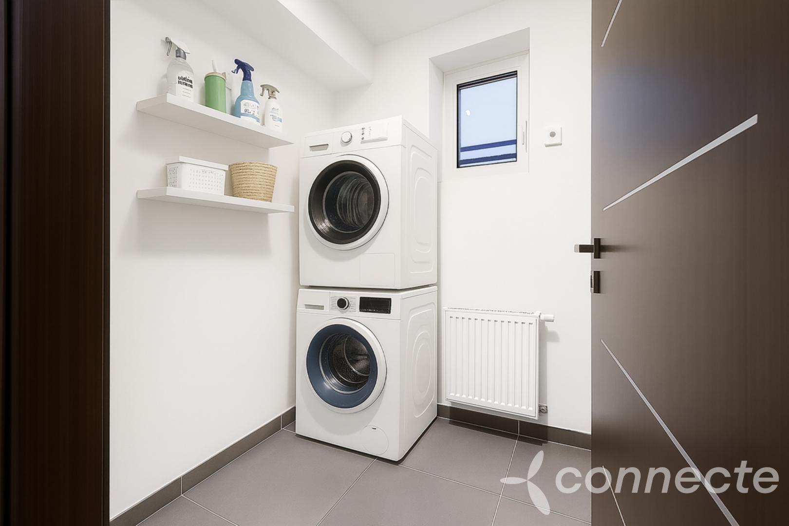 - Technical room (2.7 m2) with water supply and waste: washing machine and dryer outside the living areas.