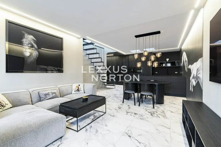 In the Heart of Kralovske Vinohrady In the prestigious Italska Street, an exceptional top-floor 3-bedroom duplex with two terraces has been created, combining technologies, refined design, and panoramic views of Prague.The apartment occupies the top level of a fully renovated Neo-Renaissance building with a lift, just steps from Namesti Miru and the Vinohrady Theatre. Its main highlight is a generous rooftop terrace offering breathtaking views across the entire city. The second, quiet terrace faces the inner courtyard and spans the full length of the apartment.The layout includes a spacious living room with a modern kitchen and a dining area, a master bedroom with its own en-suite bathroom, a children’s room with a separate bathroom, a guest toilet, a walk-in closet, and an entrance hall. Additional comfort is provided by a large utility room functioning as a laundry room, offering highly practical daily convenience.Every detail of the interior has been designed with a strong emphasis on quality, functionality, and timeless character.The apartment is equipped with first-class materials, ensuring maximum comfort, low operating costs, and a healthy indoor environment.Heating and cooling are provided by an independent air-to-water heat pump, which, in combination with underfloor heating and a ceiling heating-cooling system, guarantees ideal thermal comfort throughout the year. A mechanical ventilation system with heat recovery provides a constant supply of fresh, filtered air.A luxurious atmosphere is further enhanced by high-quality design materials, custom-made furniture, large-format bathroom tiles, solid wooden flush doors and meticulously designed storage solutions. The apartment features a modern custom-built kitchen equipped with Miele appliances.It also includes an intelligent home system allowing the control of heating, cooling, lighting, and appliances via a mobile app.Attention to quality extends to the building structure as well: foam insulation minimises heat loss, acoustic partitions ensure complete privacy, and triple-glazed windows provide superior thermal and sound insulation. The entrance area is complemented by a living green wall with an automatic irrigation system, adding a pleasant and sophisticated touch.The apartment is offered for sale fully furnished, subject to agreement with the owner.The apartment is oriented toward a quiet inner courtyard, just a short walk from Namesti Miru and within easy reach of the popular Riegrovy Sady Park, offering ample space for sports, leisure, and relaxation. The surroundings provide an exceptional selection of top-rated restaurants, cafés, bars, a theatre and all essential everyday services.Outstanding transport accessibility — Metro A and tram lines only minutes away ensures fast connections to every part of the city.This apartment represents an opportunity for anyone seeking a luxurious, technologically advanced and stylish home in one of Prague’s most prestigious districts.