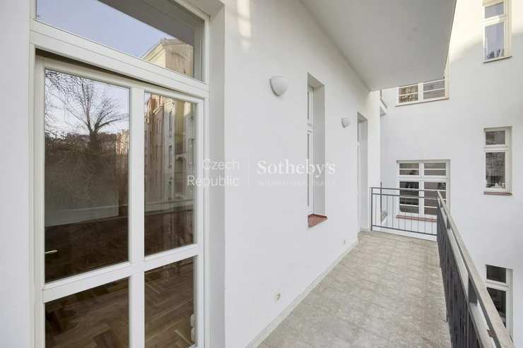 The apartment is located in a prestigious location in Královské Vinohrady, in close proximity to Náměstí Jiřího z Poděbrad, Riegrovy sady or Wenceslas Square. The surrounding area offers a rich cultural and social life, a wide selection of restaurants, cafes, bistros and wine bars. The Flora shopping center with a cinema and many shops is within walking distance. A significant benefit of this location is also the abundance of greenery - Riegrovy sady or the park on Náměstí Jiřího z Poděbrad provide a pleasant environment for relaxation.