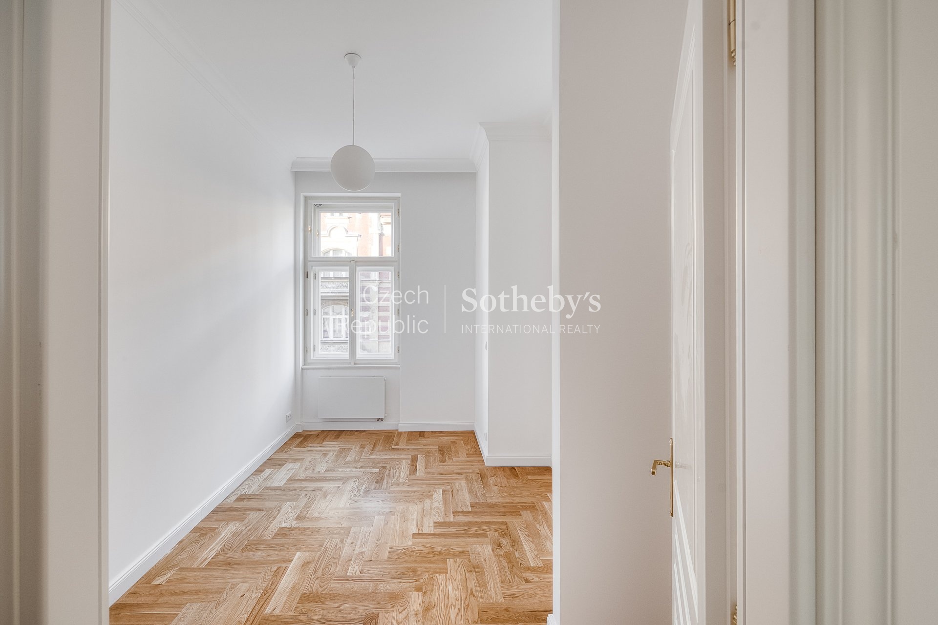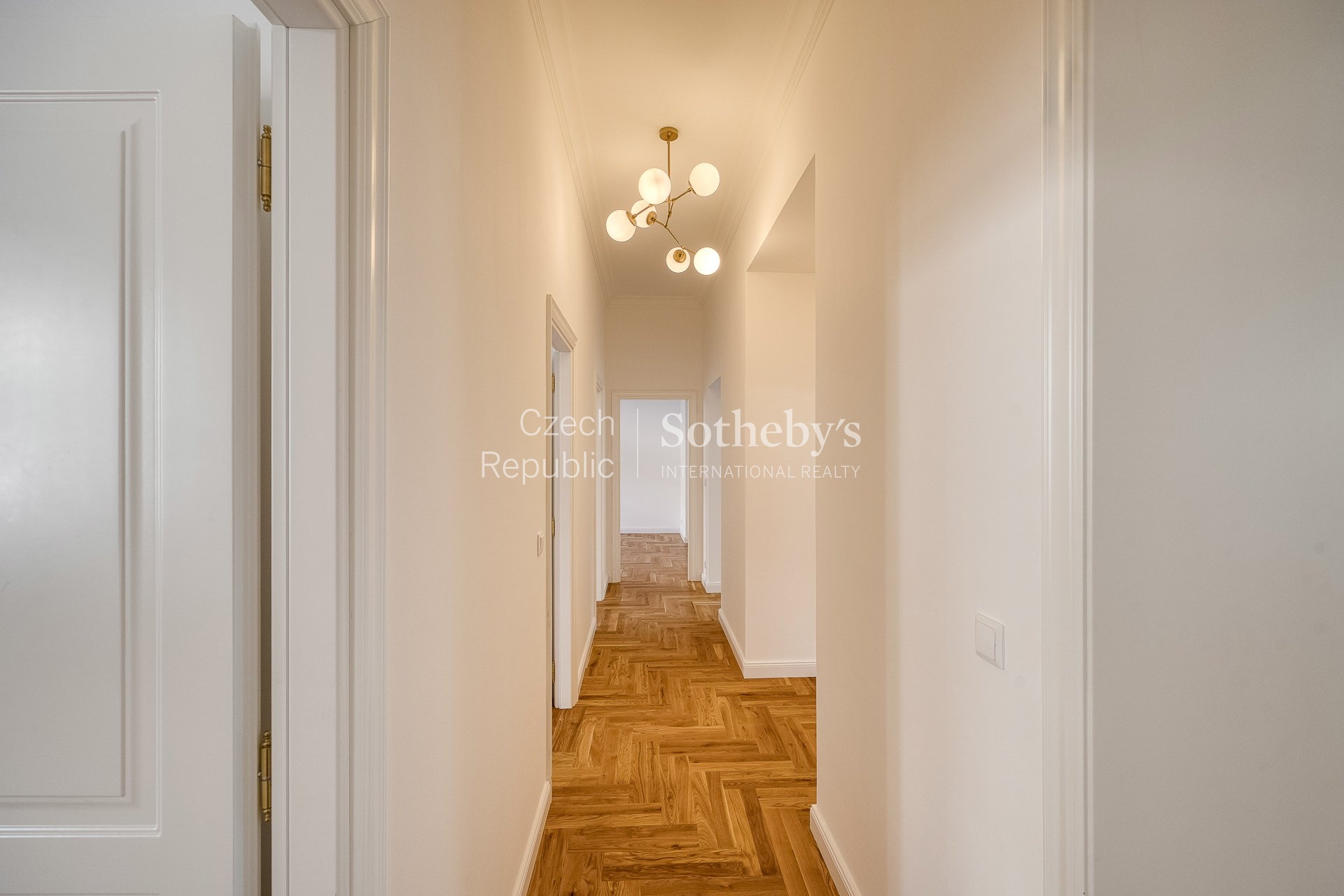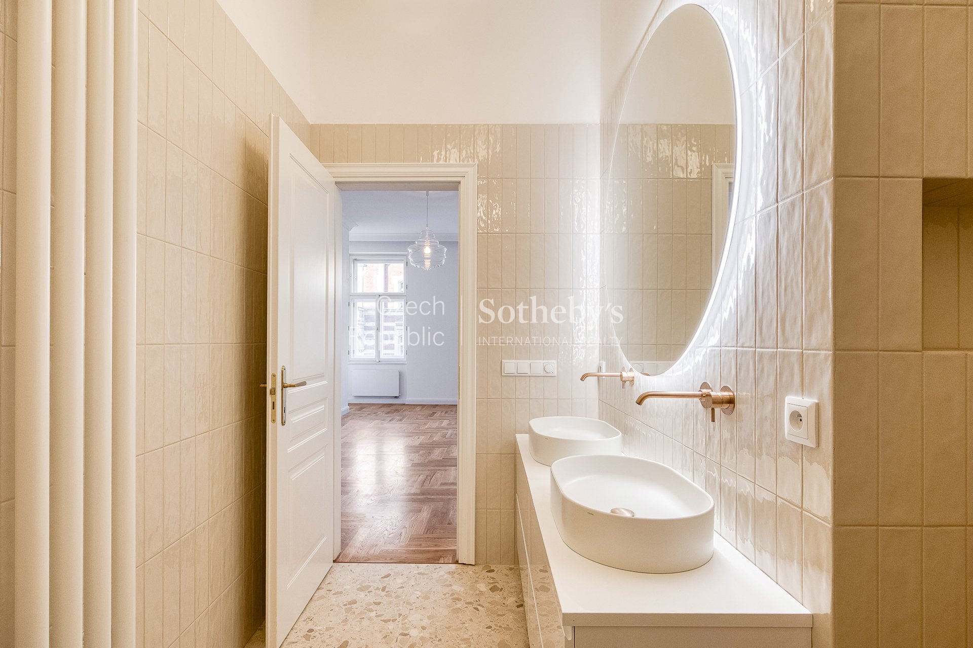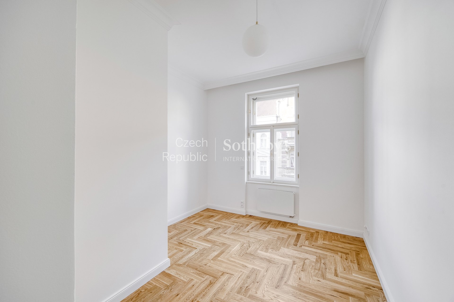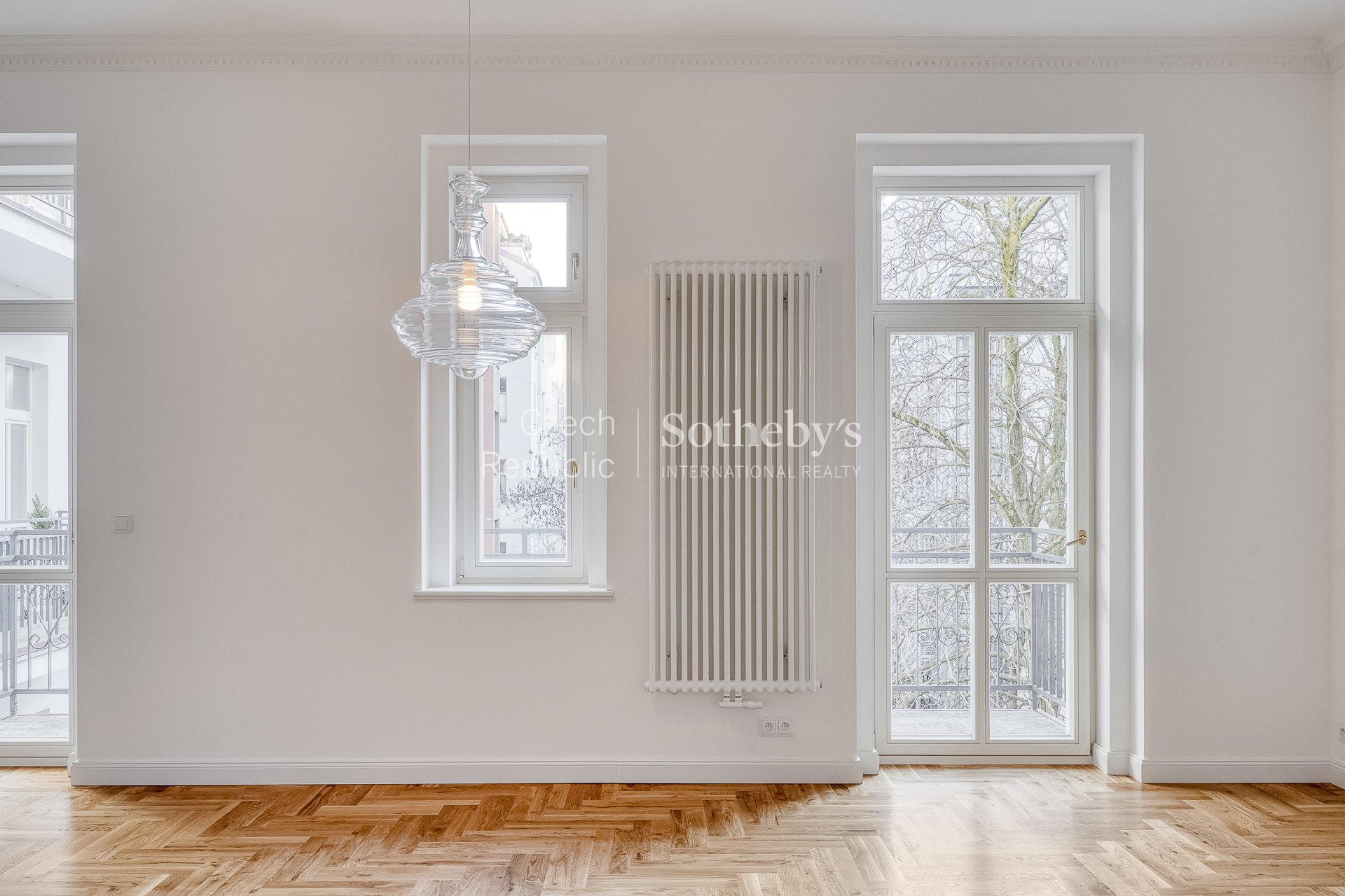 Sotheby’s Int. Realty Czech Republic offers for sale a newly renovated apartment with a generous layout 5+kk on the 4th floor of a house with an elevator in Vinohrady, right on desired Mánesova street. This is an ideal place for family living in the city center with the popular Riegrovy Sady park literally around the corner.