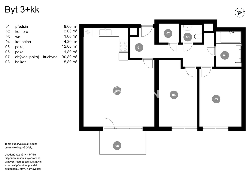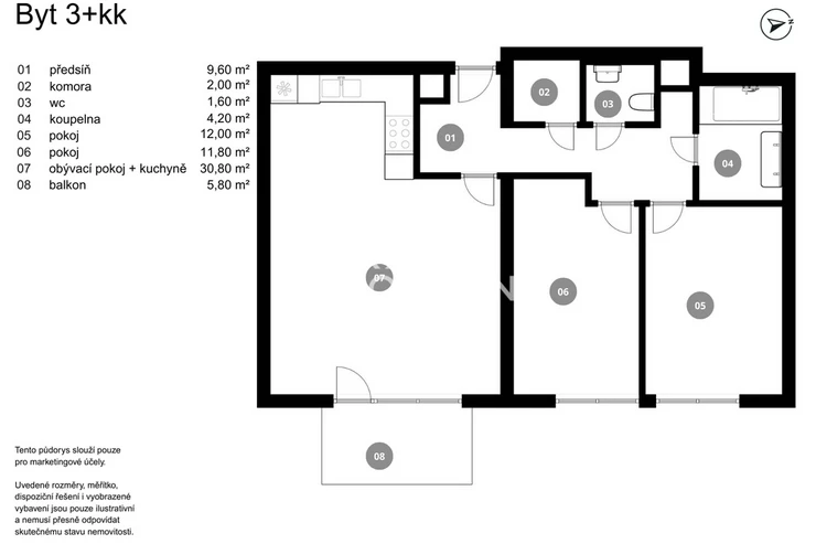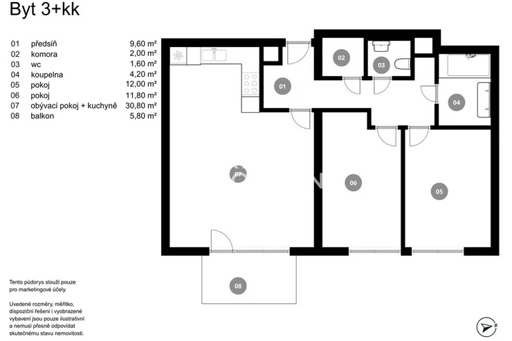 We offer for sale a spacious 2-bedroom apartment with a total floor area of 78.1 sqm located on the 2nd floor of a modern new building. The apartment consists of two separate bedrooms, a spacious living room connected to a kitchenette, a bathroom and a separate toilet. The apartment also includes a balcony (5.8 sqm), ideal for relaxation and sitting. The apartment also has a practical cellar and a reserved parking space. The building is also equipped with an elevator.The apartment is equipped with a custom-made kitchen with high-quality Bosch appliances. The living room and bedroom are fully furnished. The overall furnishings of the apartment are modern in style, with an emphasis on functionality and comfort.The apartment is located on Toufarova Street in Prague 5. The location offers excellent civic amenities and great transport connections. You will find all the necessary infrastructure in the vicinity – shops, schools, kindergartens, restaurants, and medical facilities. Bus and metro stops are within walking distance, providing reliable transport to the center of Prague. The surrounding area also offers plenty of green spaces and parks for relaxation and sports activities. An ideal place for families with children and young couples looking for quiet living with excellent access to the city center.
