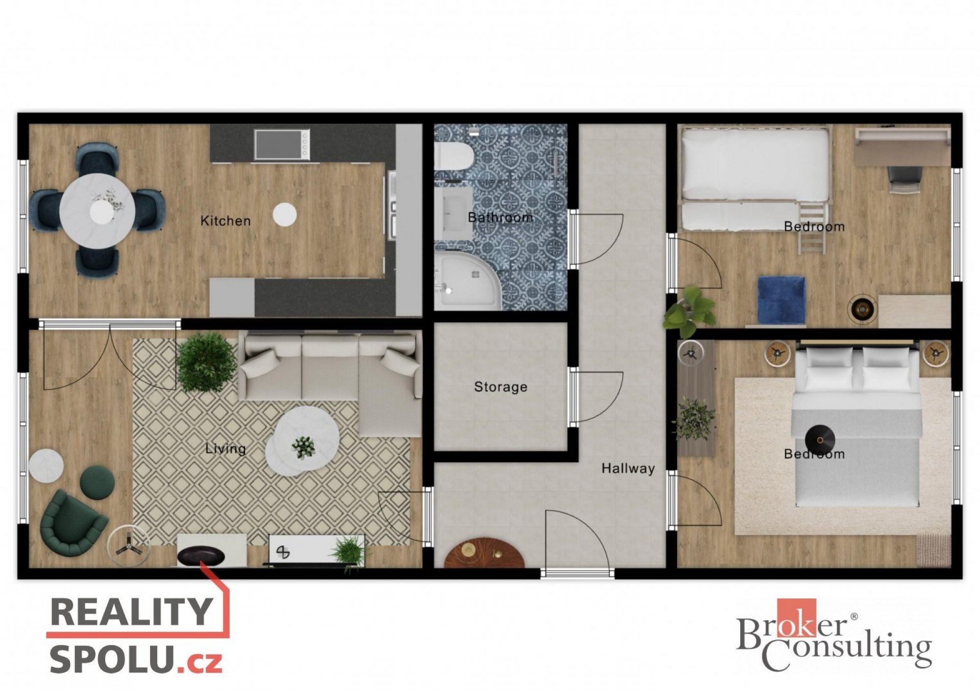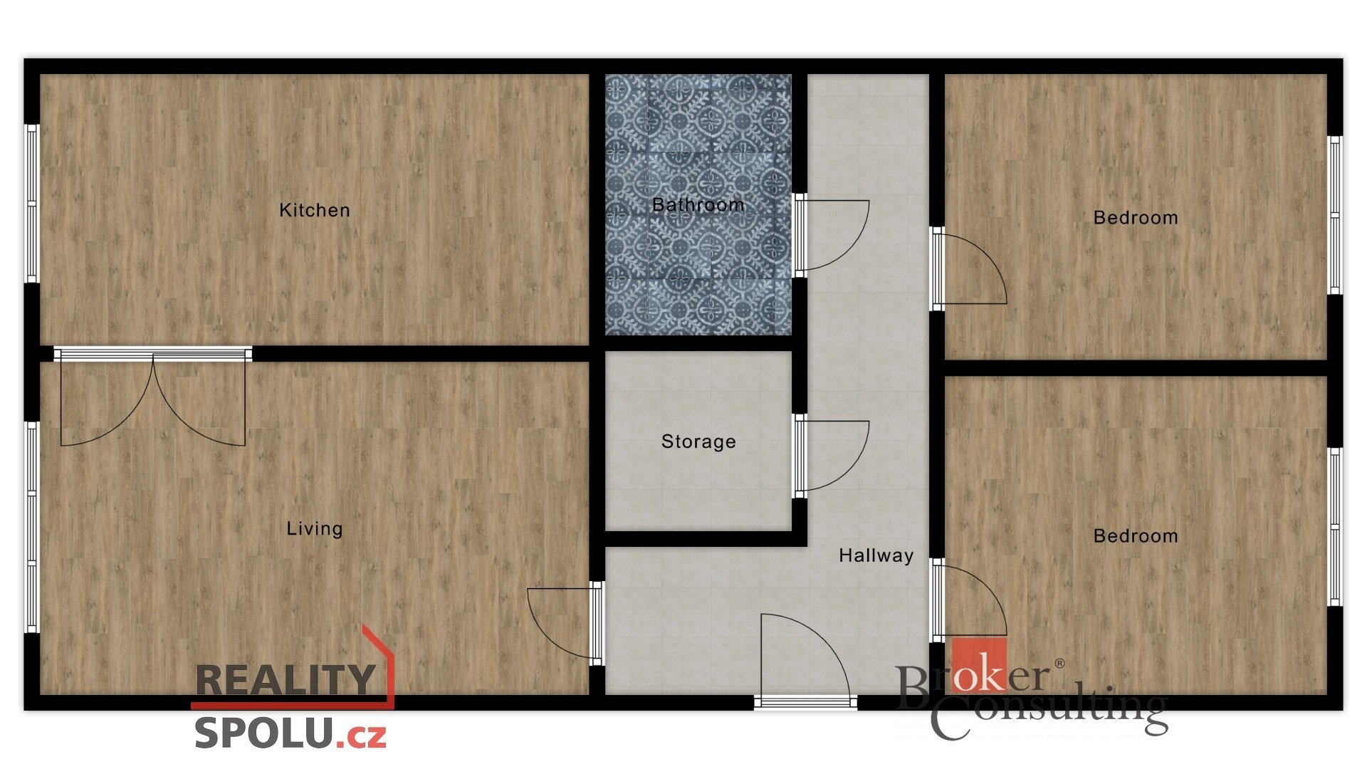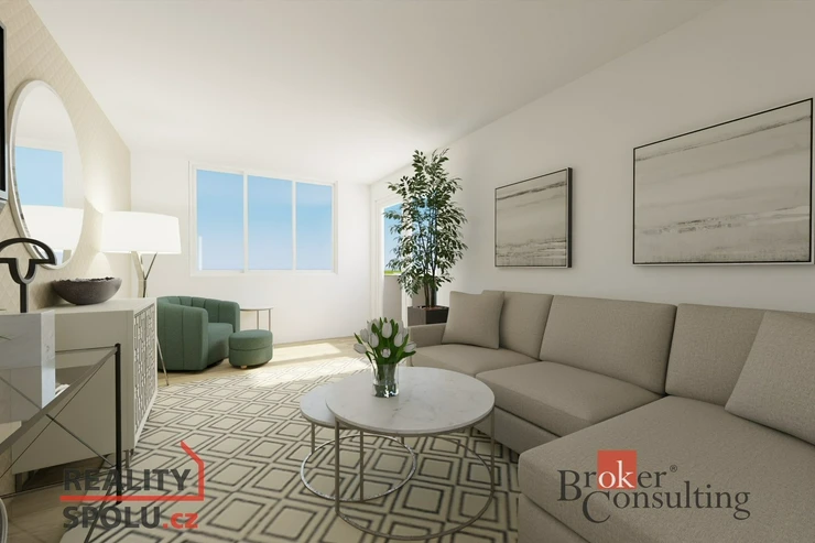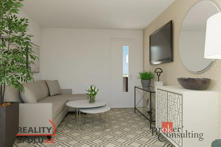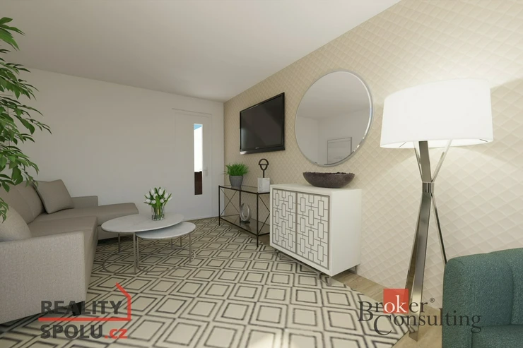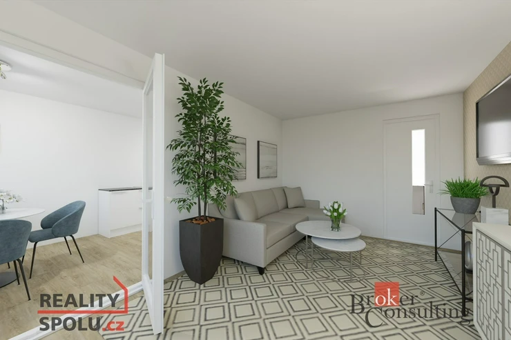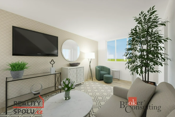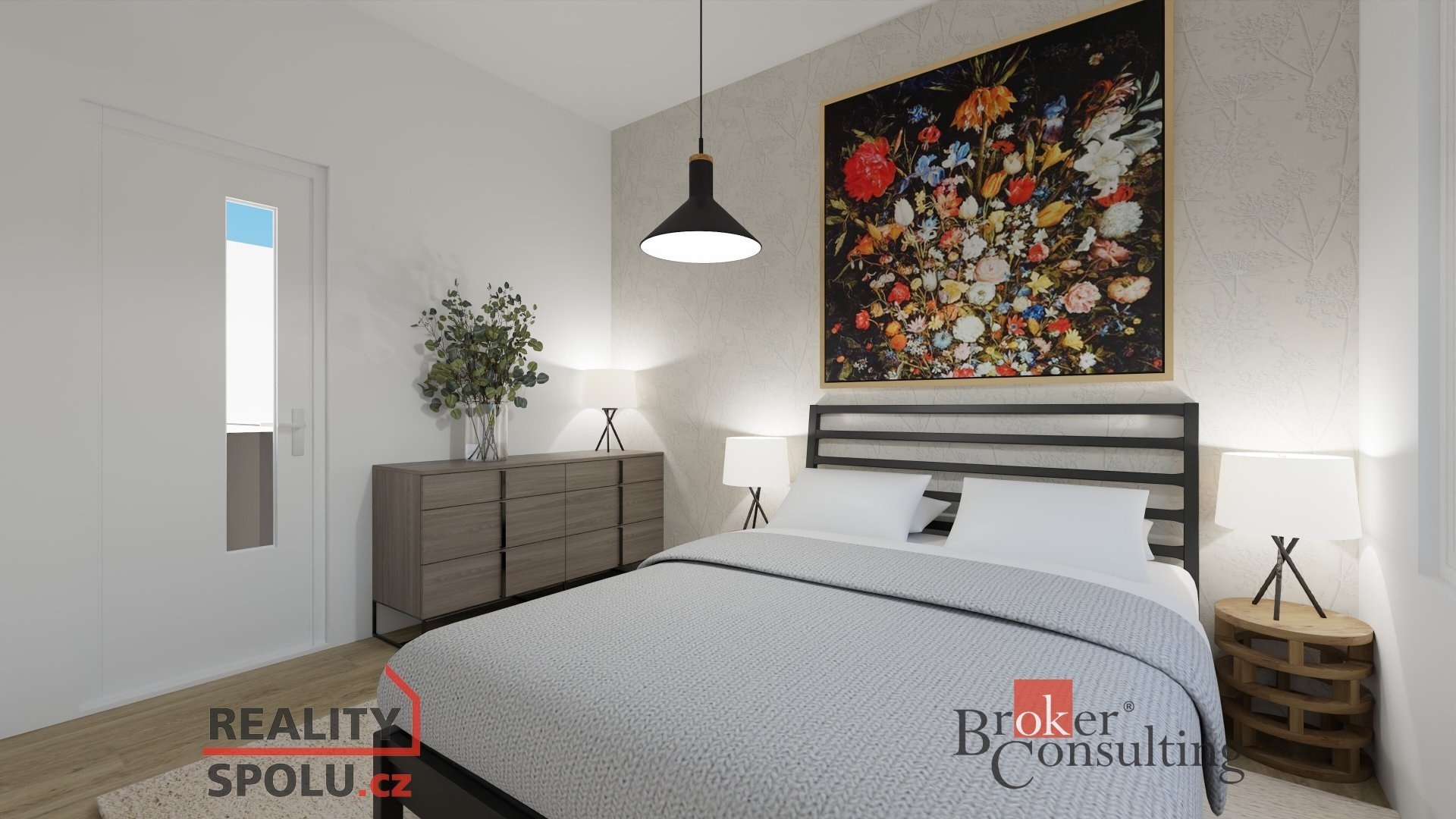 Upozornění: Fotografie obsahují i vizualizace možné rekonstrukce – byt je aktuálně v původním stavu.