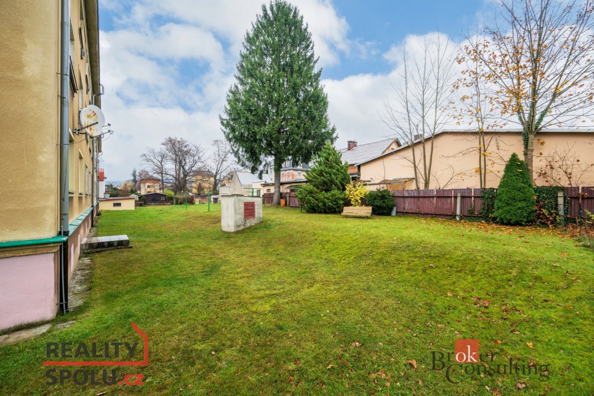 Kolem domu se nachází pozemek, který je ve vlastnictví společenství jednotek, a proto je zde možné plochu využívat jako odpočinkovou zónu..