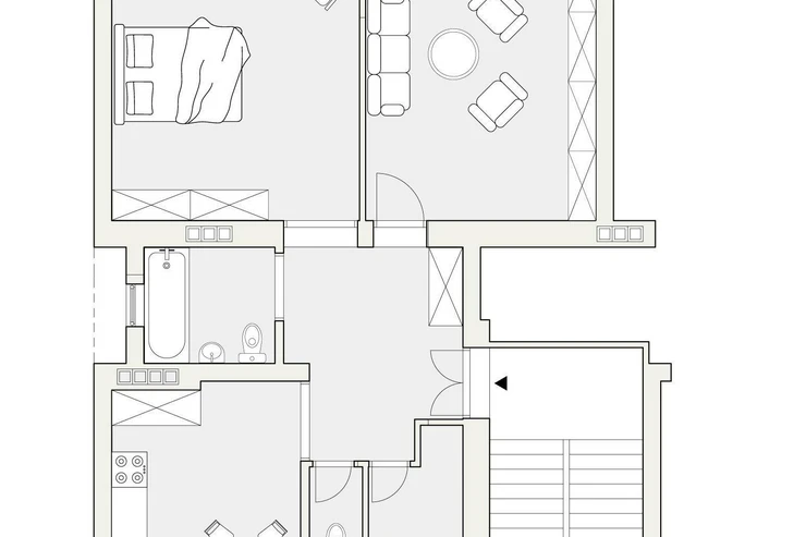Bytová jednotka o dispozici 3+kk a celkové podlahové ploše 89,7 m² se nachází ve 3. nadzemním podlaží čtyřpodlažního bytového domu v širším centru Pardubic na ulici Svobody. K jednotce náleží lodžie o velikosti 2,1 m² orientovaná na jih a sklepní prostor o výměře 14,8 m².