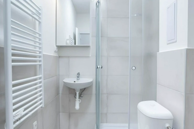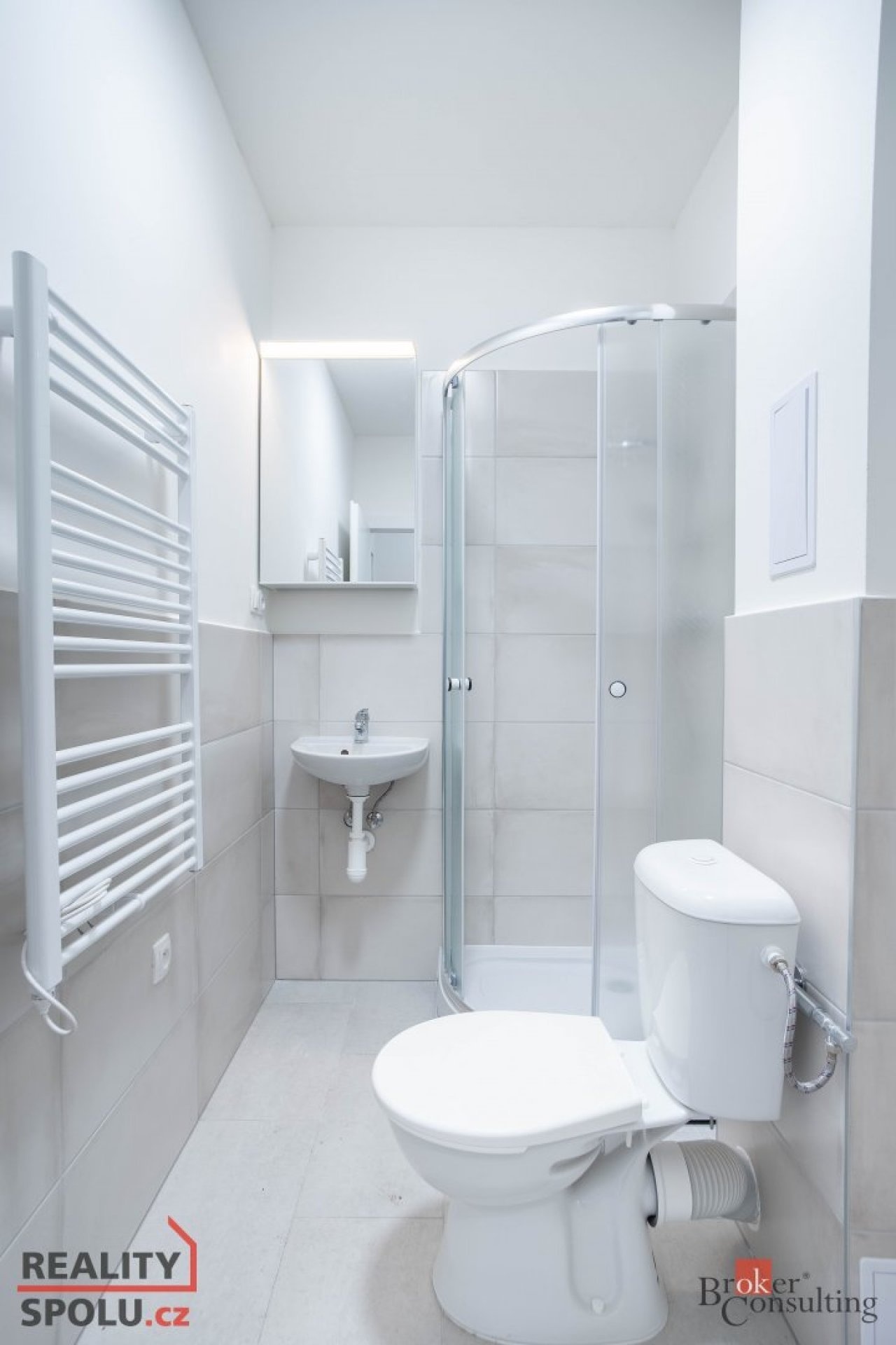 Byt disponuje novou koupelnou se sprchovým koutem a WC.