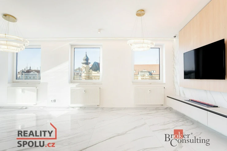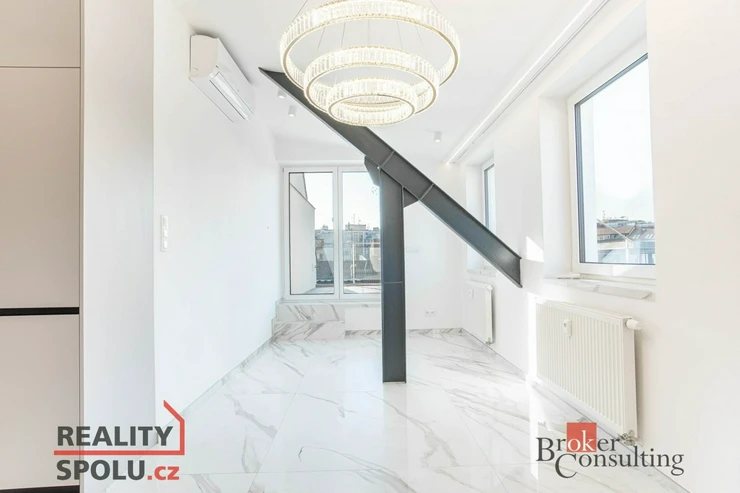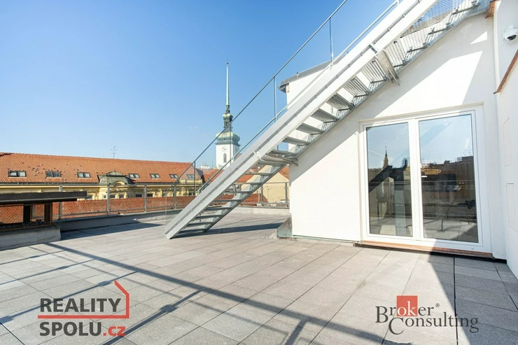 Nabízíme k prodeji exkluzivní, luxusně zrekonstruovaný a kompletně klimatizovaný byt o dispozici 4+kk s celkovou výměrou 200 m², z toho 95,3 m² činí podlahová plocha a 104,7 m² představují prostorné venkovní terasy. Nemovitost se nachází v samotném srdci Brna na ulici Kobližná a nabízí kombinaci moderního designu, nadstandardních materiálů a mimořádně světlého, vzdušného interiéru. V celém bytě je zároveň připravena instalace venkovních žaluzií.