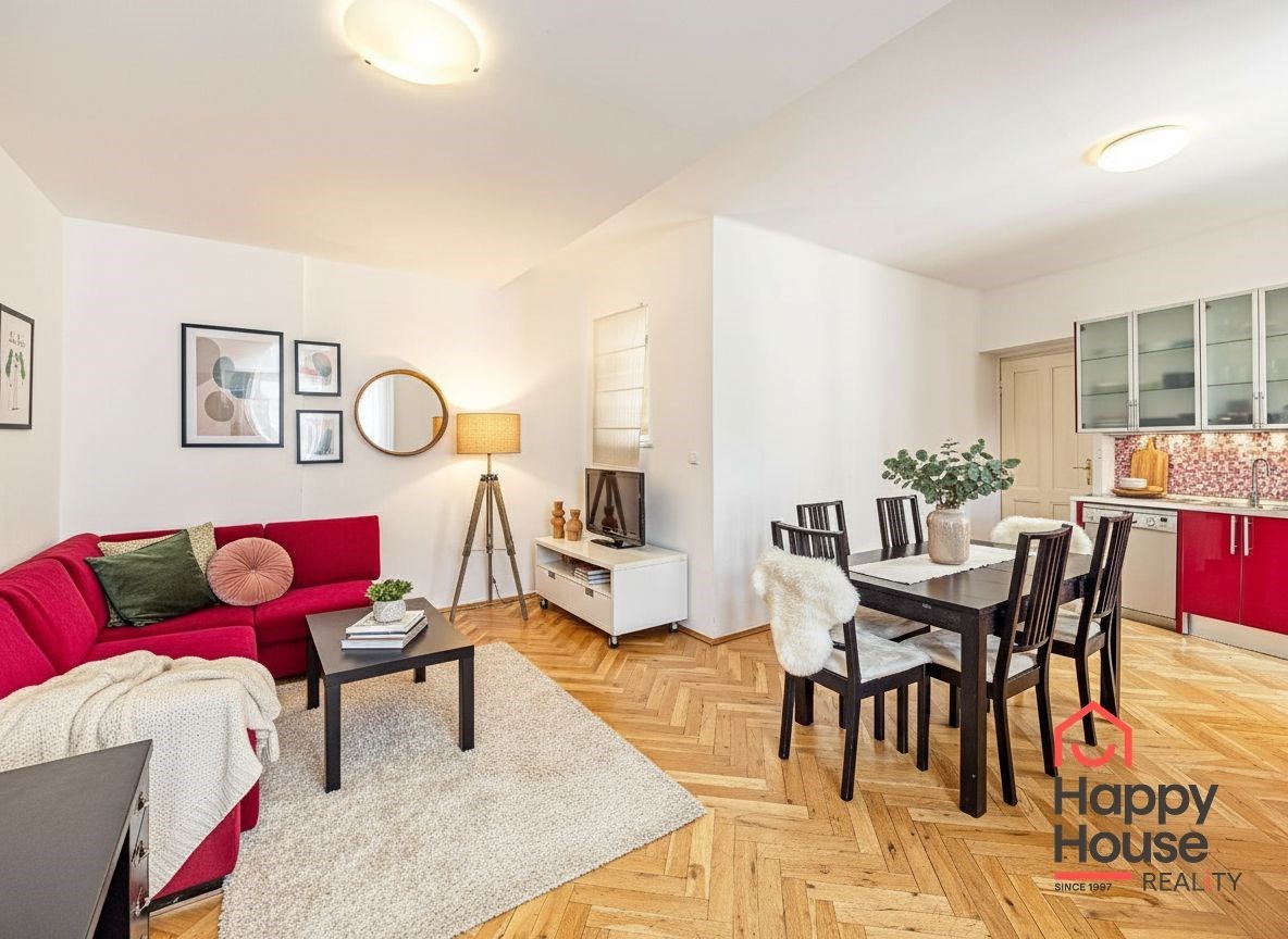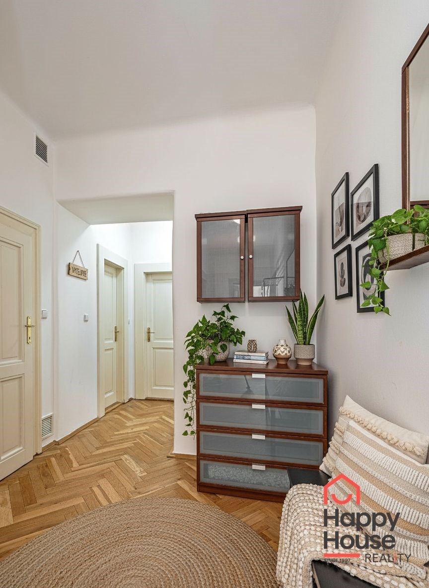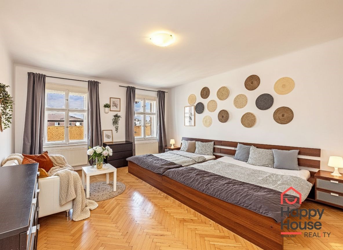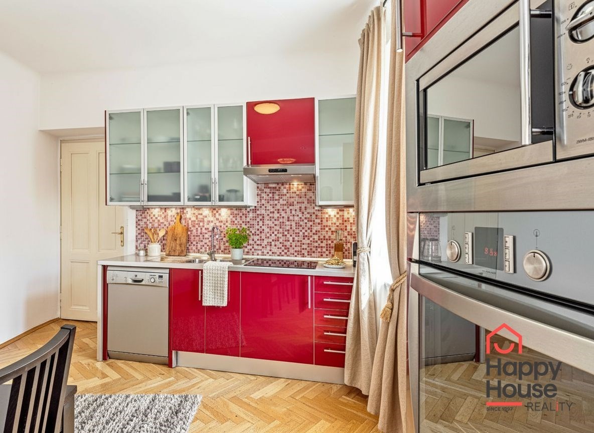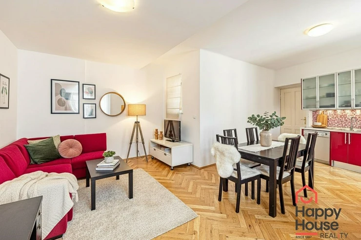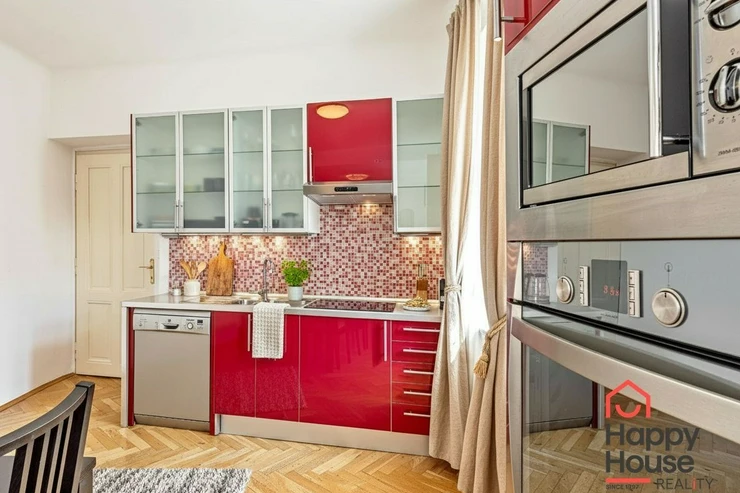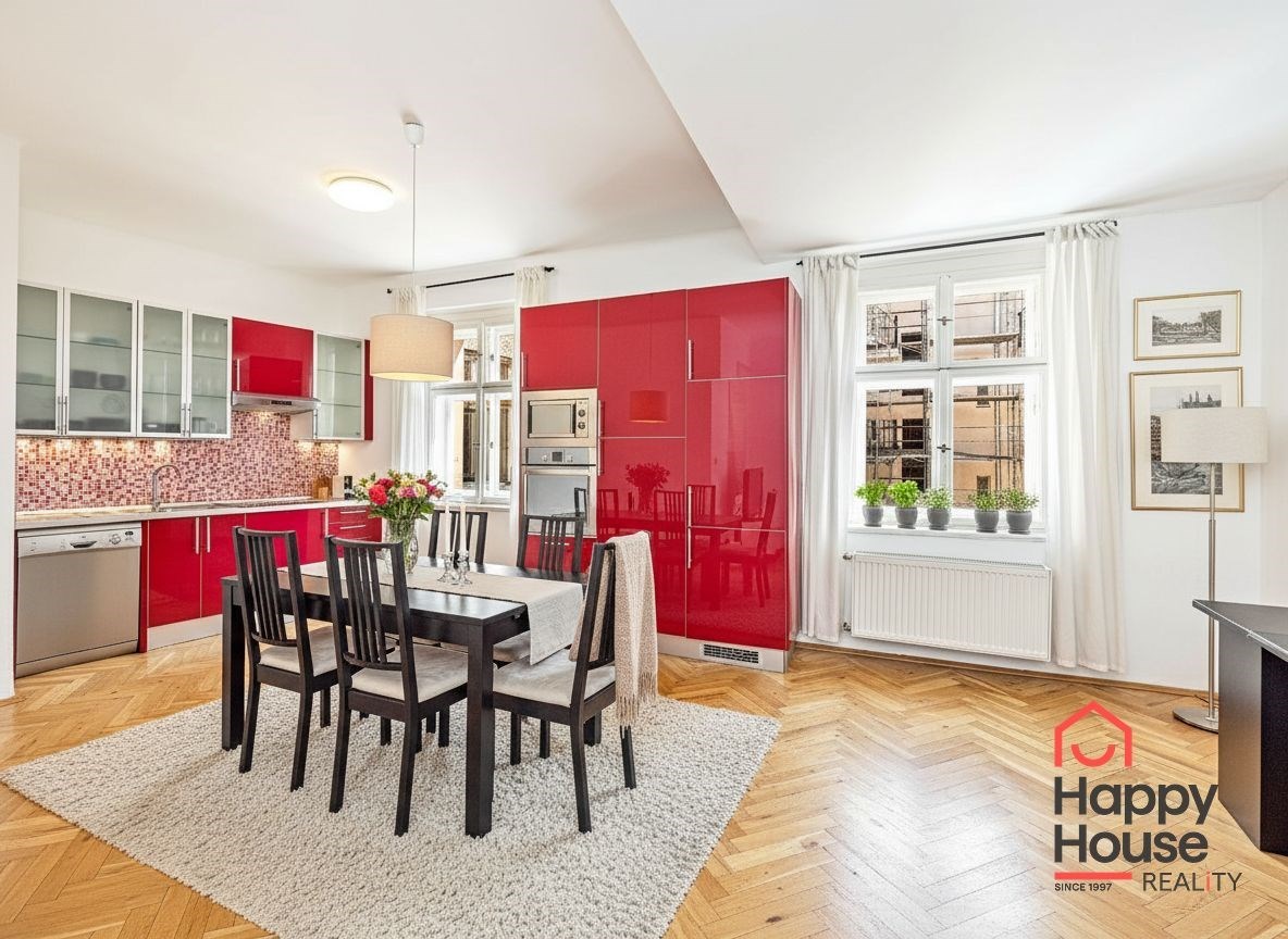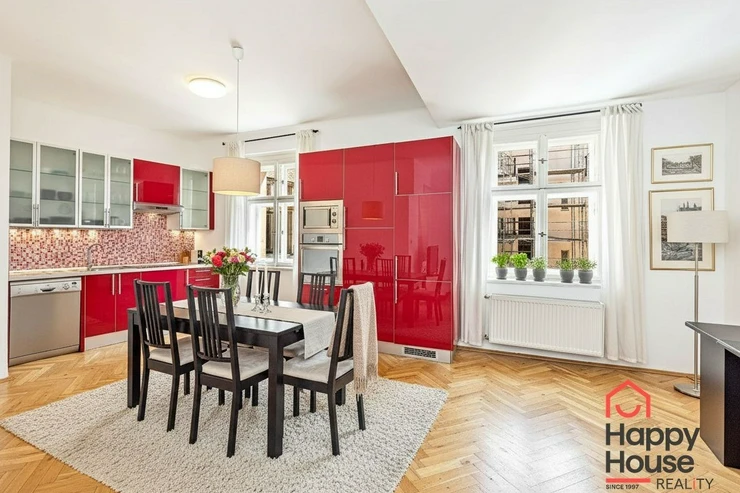 Generous 3+kk apartment covering 108 sqm on the 4th floor with an elevator. Just a few steps from the I.P. Pavlova metro station providing excellent transport connections to all parts of Prague. A few minutes' walk to Charles Square and about five minutes to Wenceslas Square. You will find all services in the immediate vicinity - shops, restaurants, cafes, schools, and medical facilities.