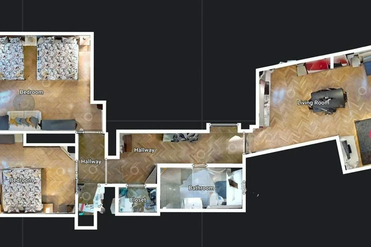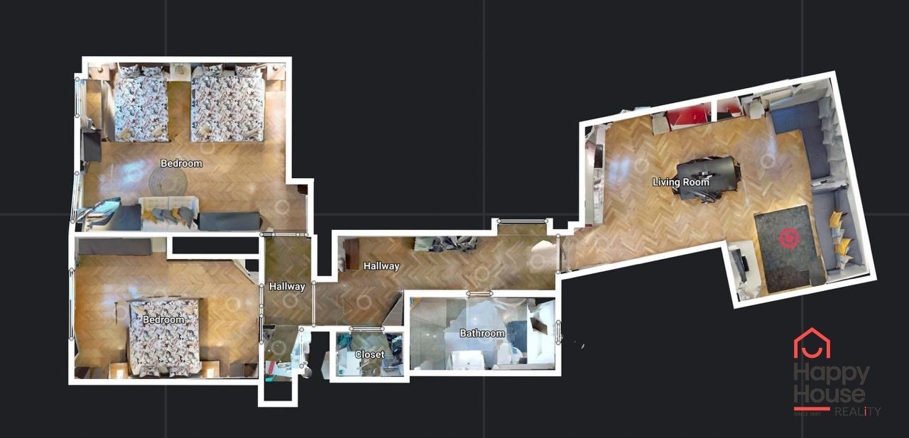 Photos are processed by AI homestaging for a better idea of the space's potential. See the actual condition during a visit.