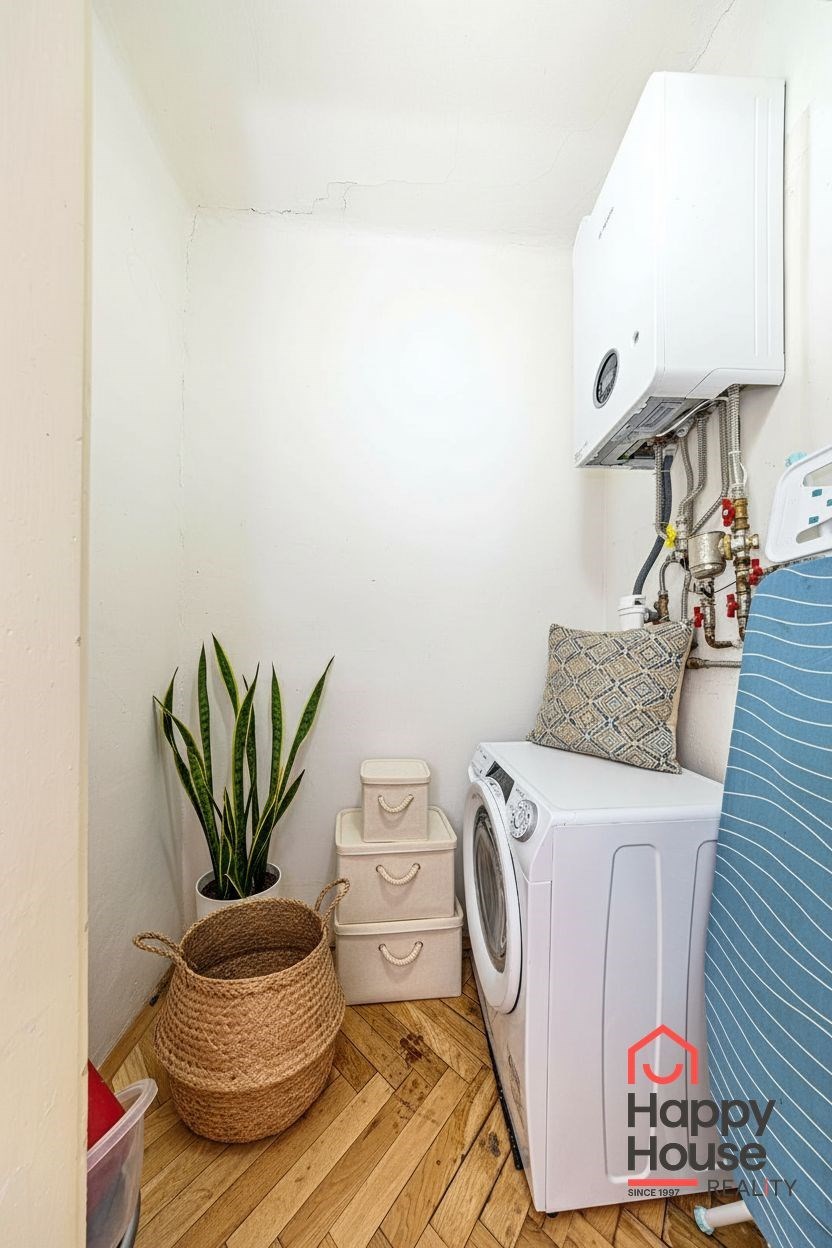 The price includes a kitchen unit with all appliances - refrigerator, hob, microwave oven, extractor hood, and dishwasher. Rooms have parquet floors, and the bathroom is tiled. Heating and hot water are provided by a private gas boiler, allowing you full control over consumption and costs.
