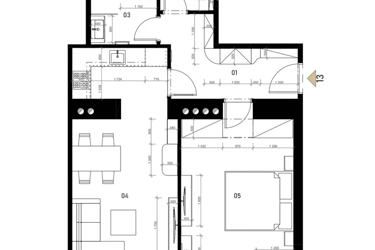 This fully furnished apartment with one bedroom and a total floor area of 63,1 m² is located on the 1st floor of a six-story apartment building in Břevnov. The apartment includes a basement storage unit with an area of 2,8 m².