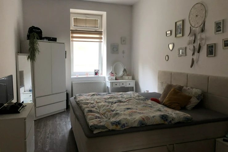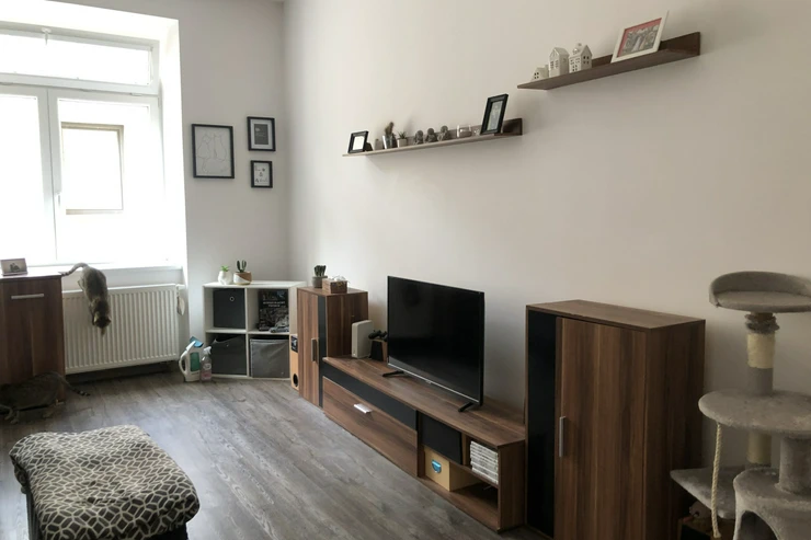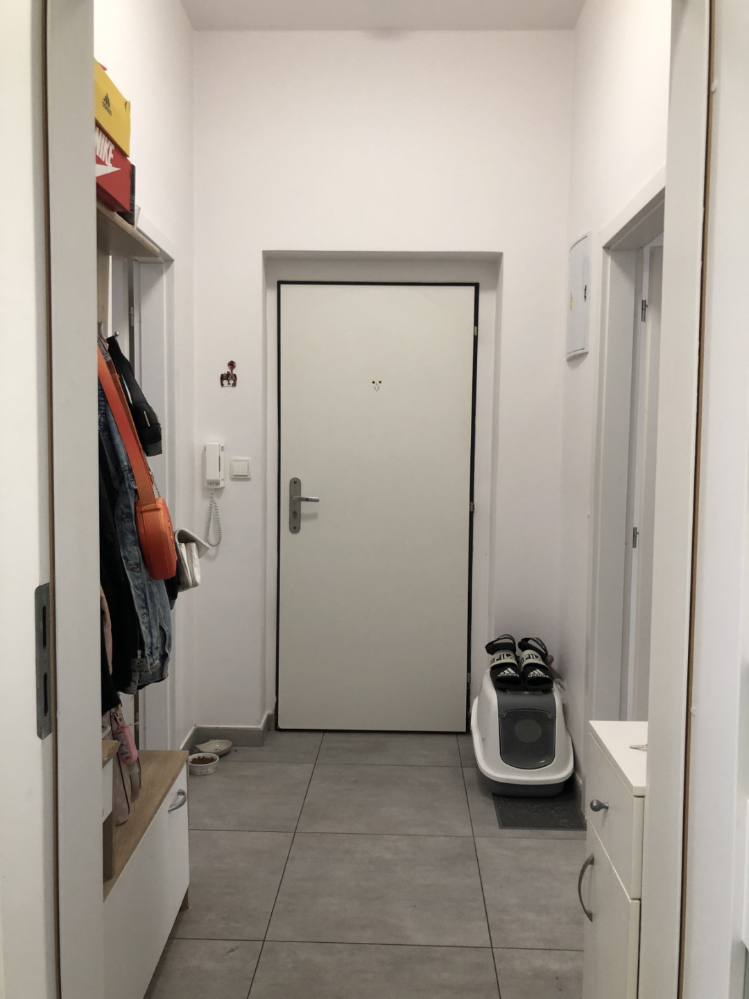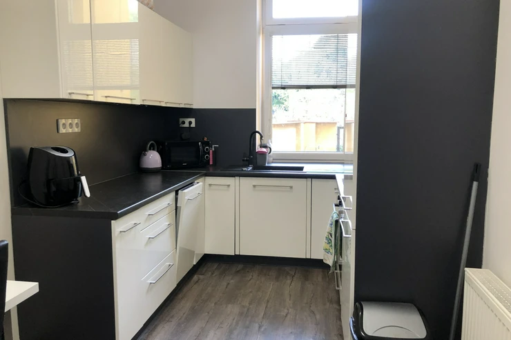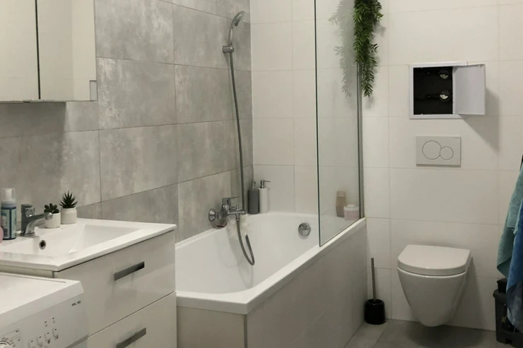 Byt má praktické uspořádání – prostorný obývací pokoj, samostatnou ložnici a kuchyň s kompletně vybavenou linkou (varná deska, trouba, myčka, lednice). Koupelna je vybavena vanou, umyvadlem a toaletou, což ocení zejména rodiny s dětmi či ti, kteří si rádi dopřejí pohodlnou koupel. Díky umístění v přízemí je byt navíc ideální pro ty, kteří preferují snadnou dostupnost bez schodů.