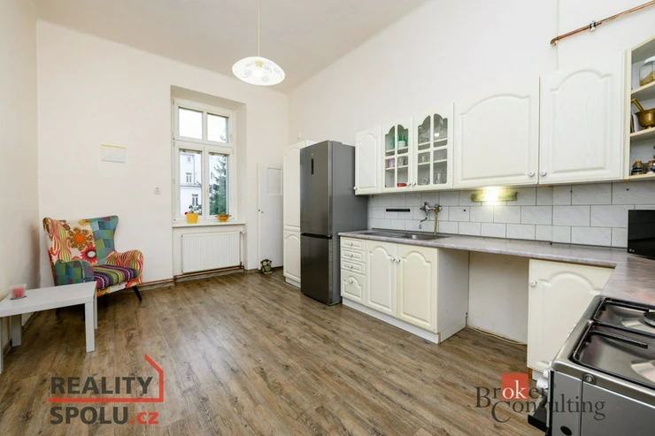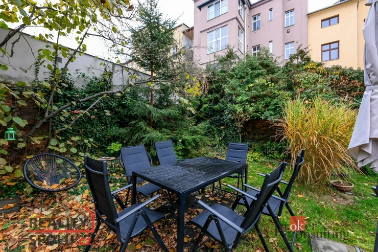 Bytový dům je kompletně revitalizovaný, vč. fasády, plastových oken, rozvodů atd. Vytápění i ohřev vody je zajištěno plynovým kotlem. K bytu náleží také praktická a prostorná sklepní kóje v suterénu. K domu náleží také velká zahrada ve vnitrobloku., kde mají jednotliví majitelé bytů dostatečný prostor pro odpočinek, posezení, grilování apod. V těsné blízkosti domu je kompletní občanská vybavenost vč. obchodů, restaurací, školy, školky. Parkování přímo před domem pro residenty za poplatek 1000,- Kč za rok.
