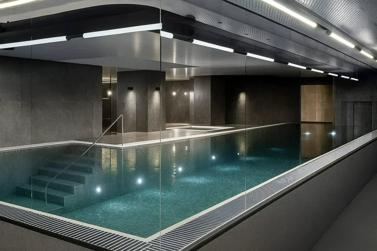 K dispozici je zdarma luxusní spa a wellness centrum, 18metrový bazén a střešní terasa s výhledem na přírodu a možností grilování.