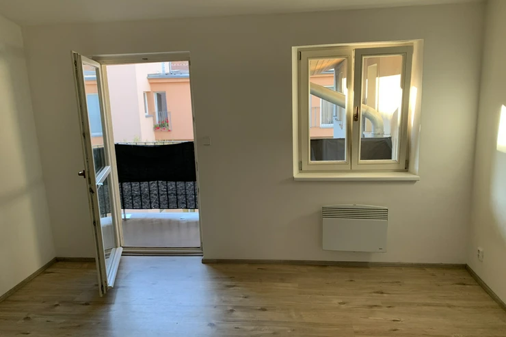 The building has a charming gallery-style architecture with a touch of historical character, perfectly combining the spirit of old Brno with the comfort of modern living.