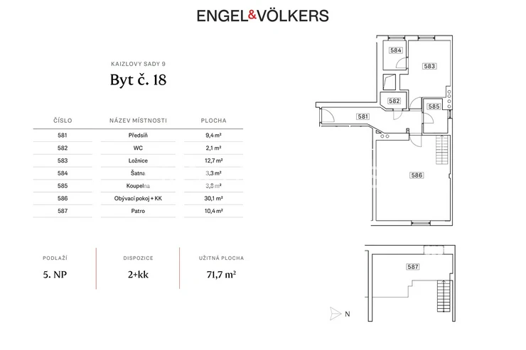 This 2+kt attic apartment with a gallery and a total area of 71.4 m² is located on the top floor of a well-maintained apartment building with an elevator, just a few steps from the greenery of Kaizlovy Sady. It offers a unique space for those looking for something more than just classic living.