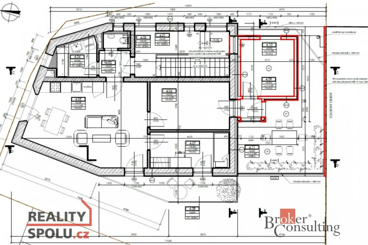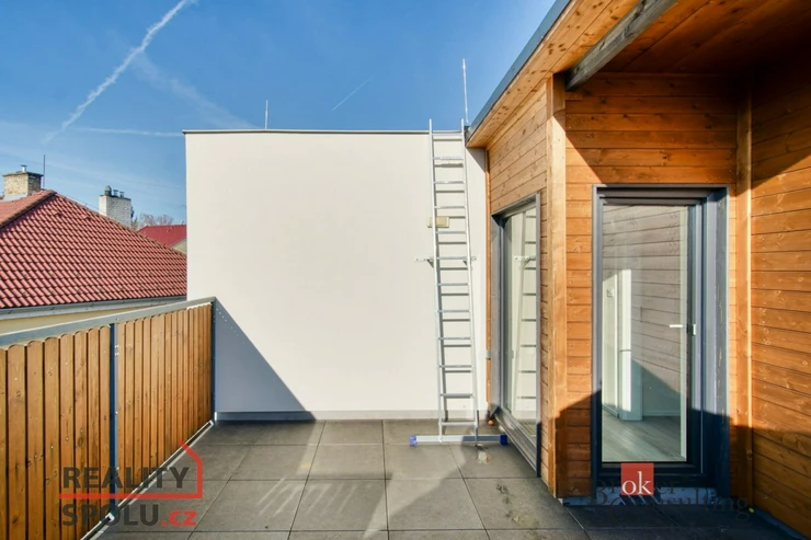 - byt nabízí celkovou plochu s terasou a balkonem 111,5 m².