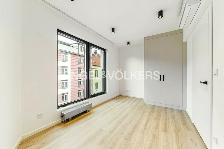 The interior of the apartment was designed by a renowned studio and offers generous storage space in the form of built-in wardrobes both in the hallway and in the bedrooms. High-quality vinyl and ceramic tiles are laid on the floors. The windows are wooden with insulating triple glazing. Heating is provided by the house boiler room. A huge advantage is the air conditioning in all living rooms and low monthly energy costs.