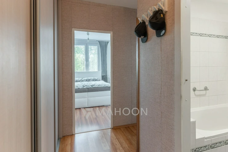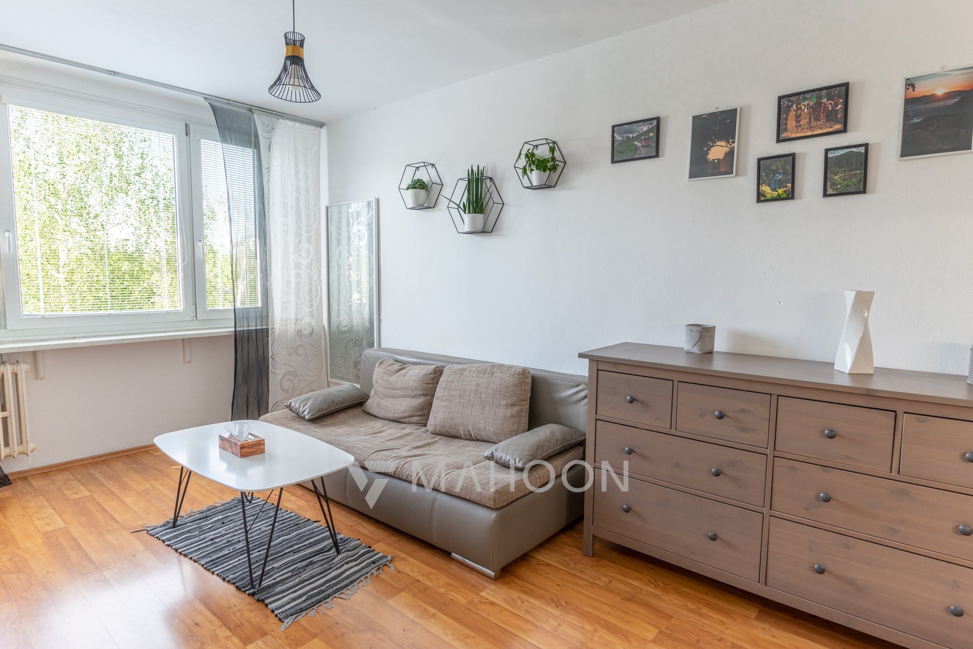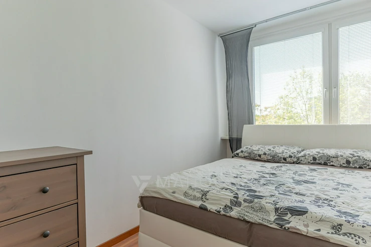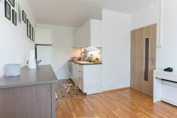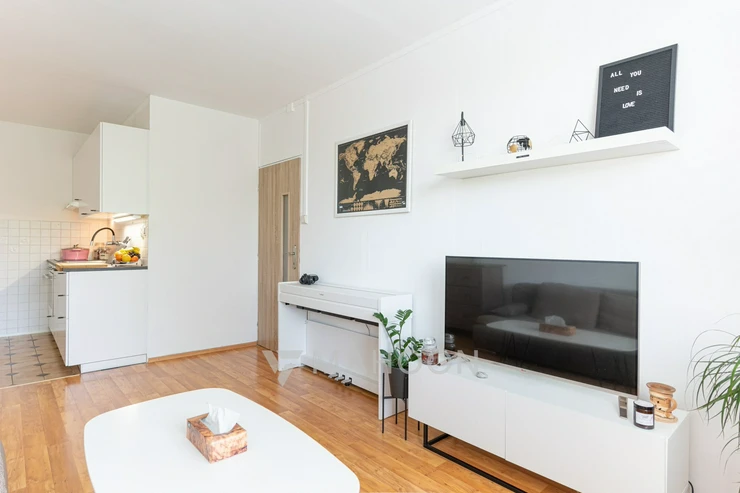 Dominantou bytu je obývací pokoj s kuchyňským koutem, který tvoří harmonický prostor pro odpočinek i společná setkání. Ložnice poskytuje příjemné soukromí pro nerušený spánek. Koupelna je vybavena vanou. Nechybí ani praktické úložné prostory.