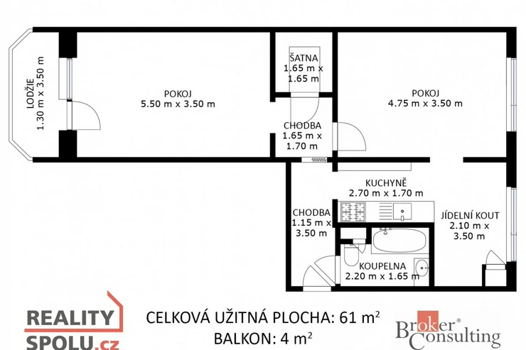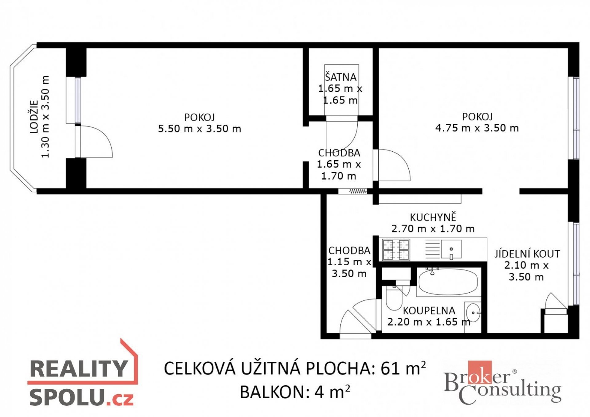 - výměra 61 m² a velmi praktické dispoziční řešení