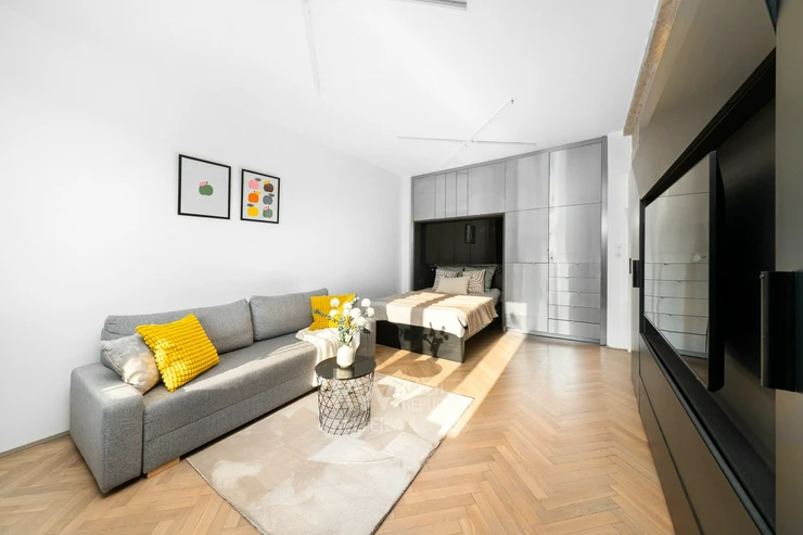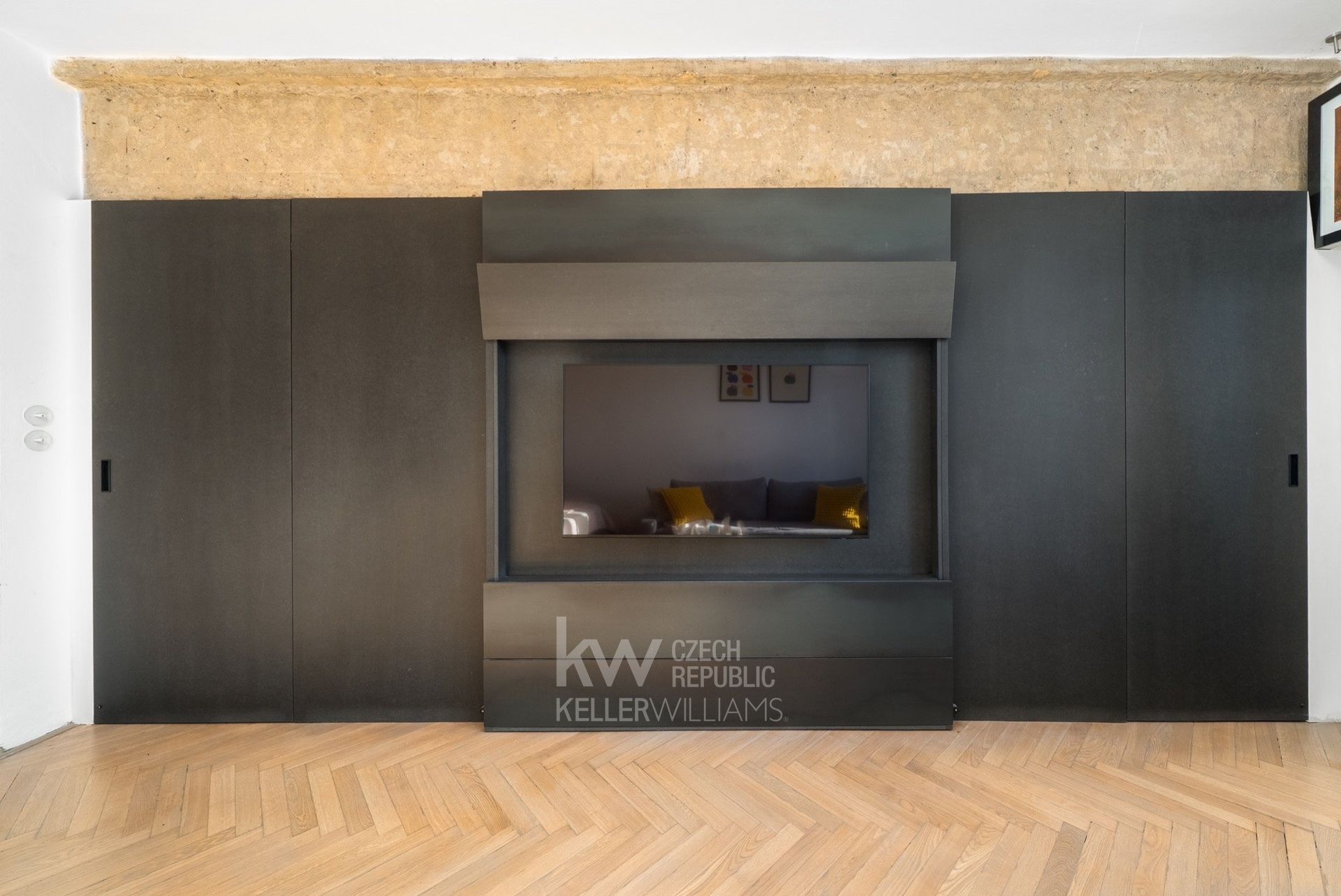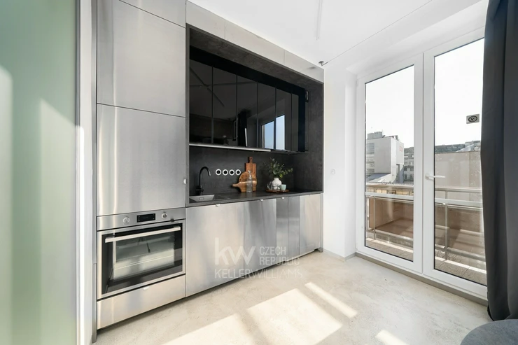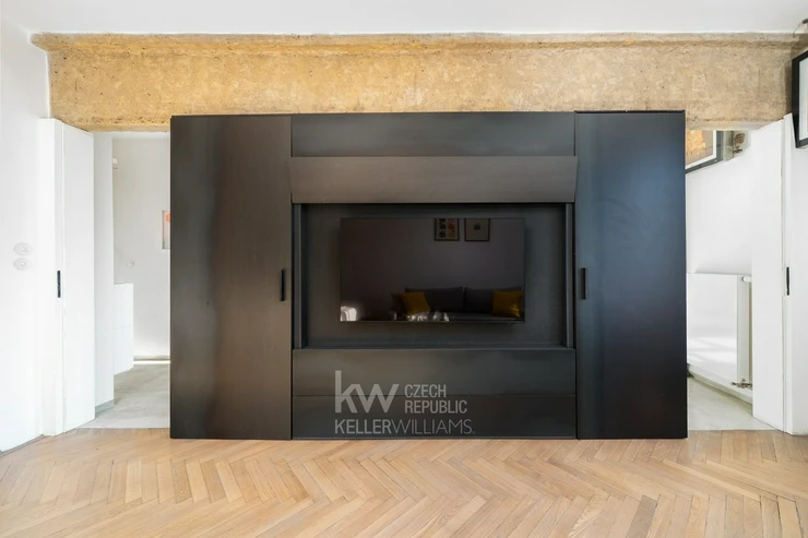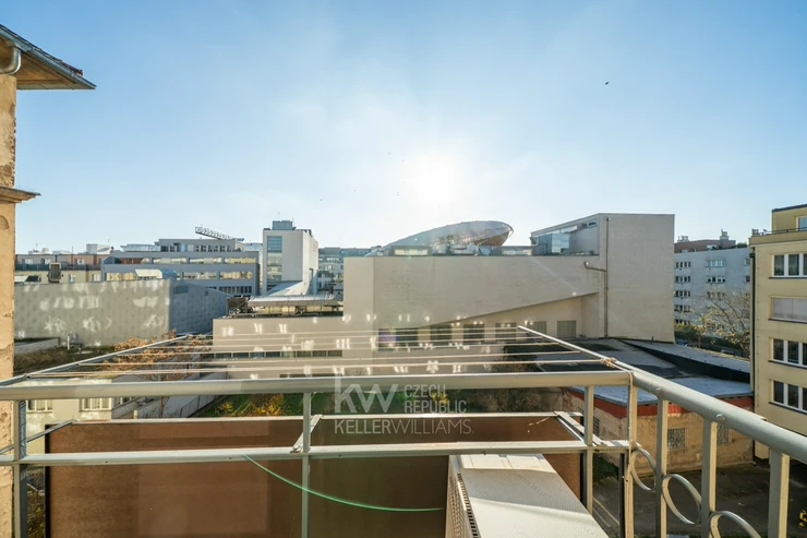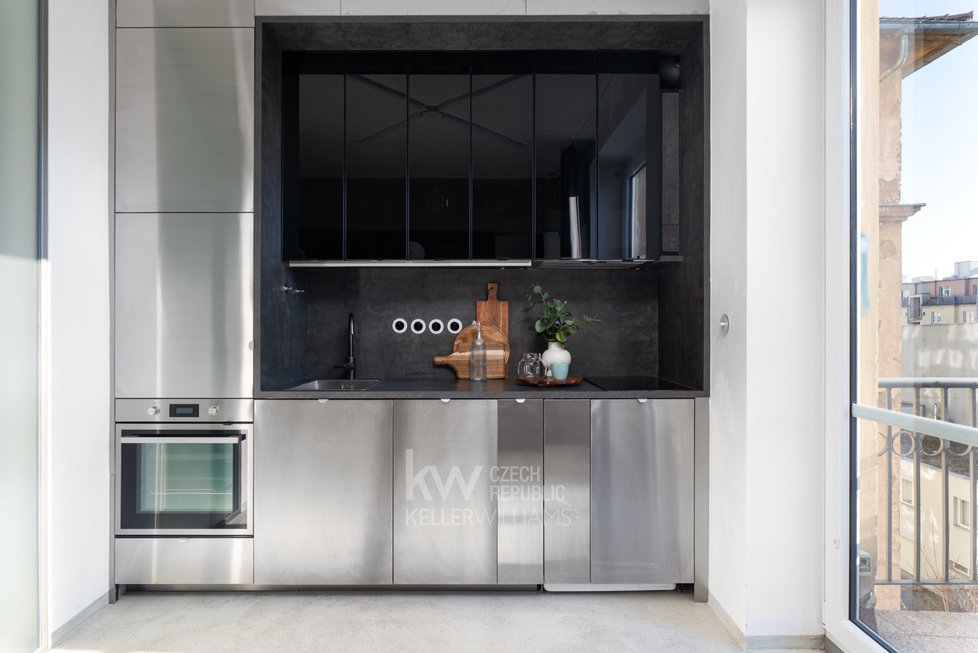 In a quiet part of Holešovice, south-facing balcony, and custom-made furnishings by architects!