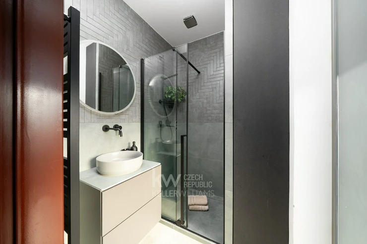 The apartment is located on the 5th floor of the building, and an elevator is available. The building is brick, dating from 1960. And the SVJ has saved over 8 million CZK in the repair fund.