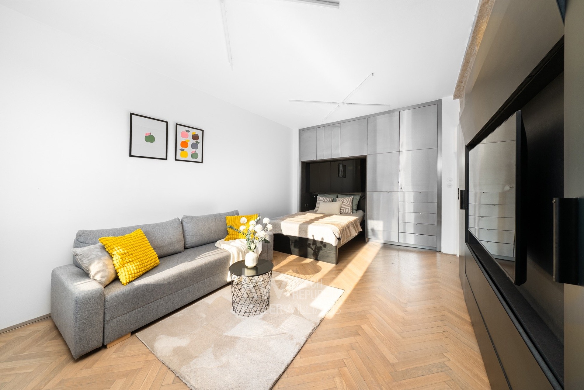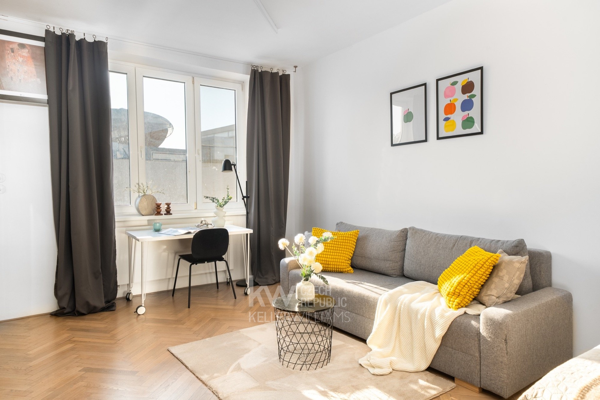 For sale is a 2+KT apartment with a floor area of 39.2 m2 + balcony 1.8 m2. The apartment underwent a complete renovation in 2021 by the architects of Studio Reaktor.