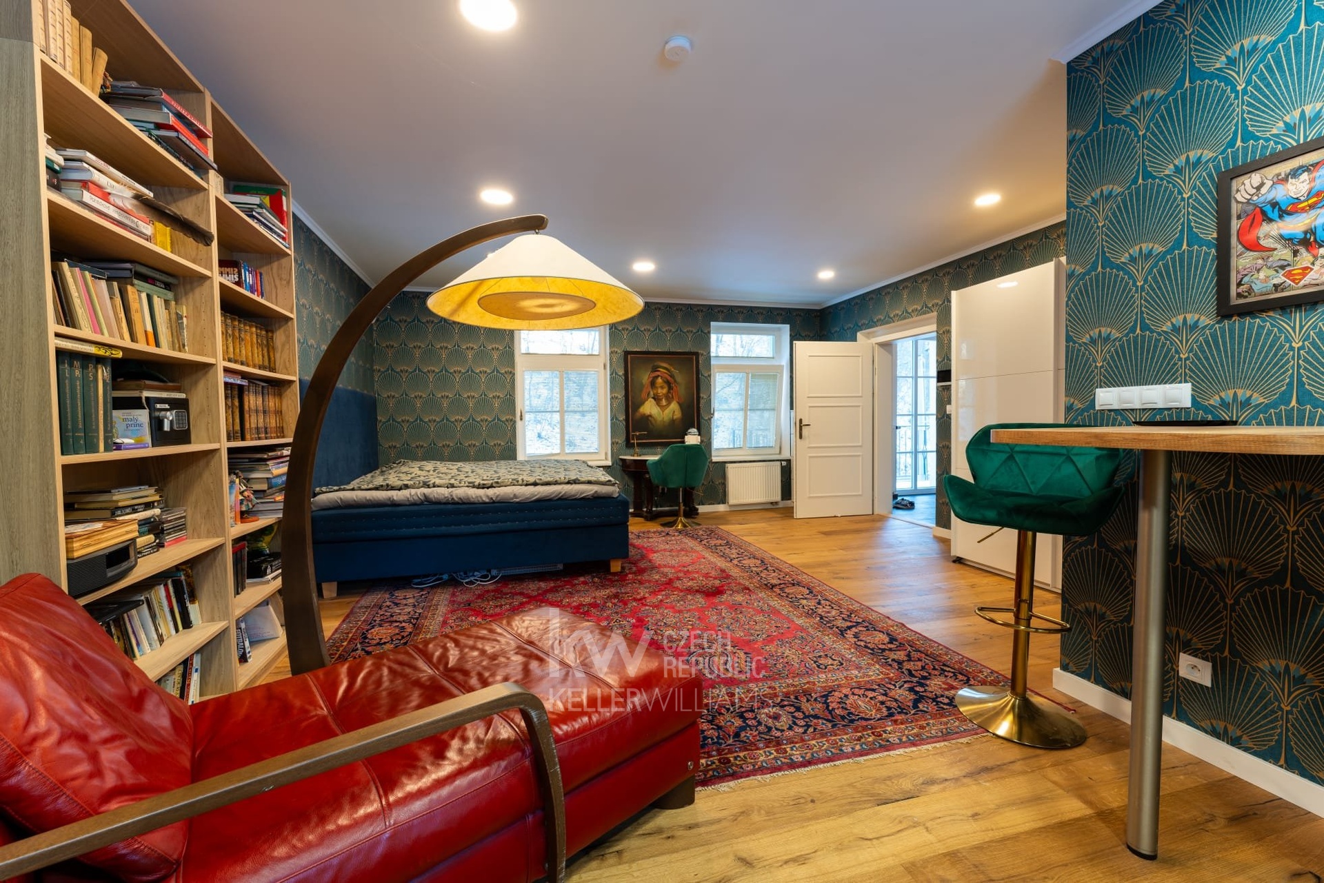 Nabízíme vám k prodeji krásný byt 1+kk v klidné lokalitě Kabáty 4, Jílové u Prahy. Byt se nachází v cihlovém domě, dříve vedeném jako mlýn, který byl zrekonstruován na menší bytový dům. V bytě o celkové užitné ploše 34 m² byly použity velmi kvalitní materiály a byl kladen důraz na kvalitu zpracování. Součástí bytového domu je také malý rybník, který poslouží jako příjemné místo k relaxaci. K bytu je dále vyčleněna část zahrady, kterou má byt k výhradnímu užívání.