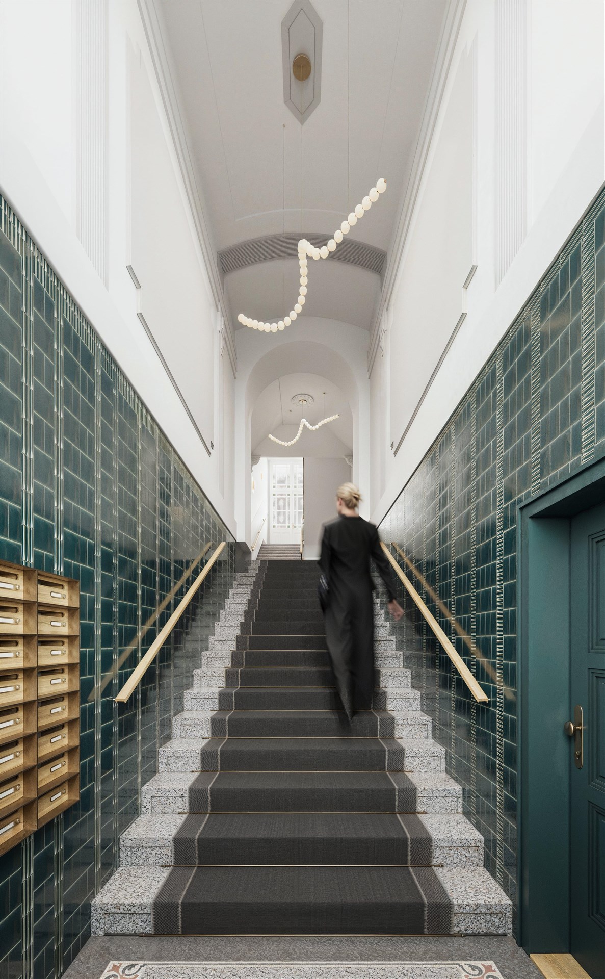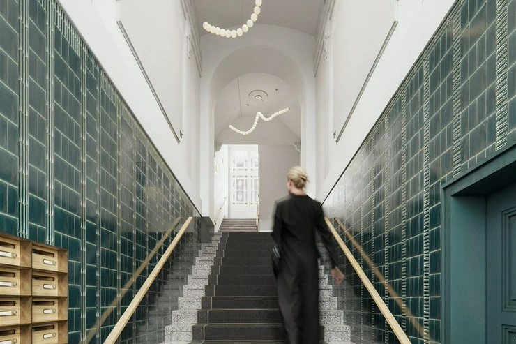 - Materials such as terrazzo, cut glass and Venetian stucco are used in the common areas