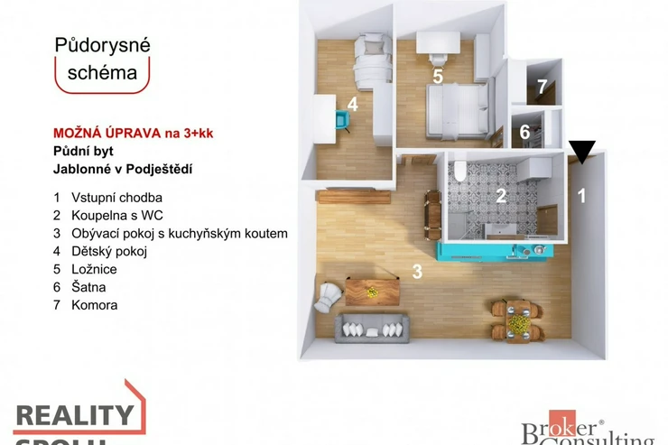 Zajímavá nabídka ke koupi vkusně zařízeného bytu v Jablonném v Podještědí s parkováním, sklepem a komorou na patře.