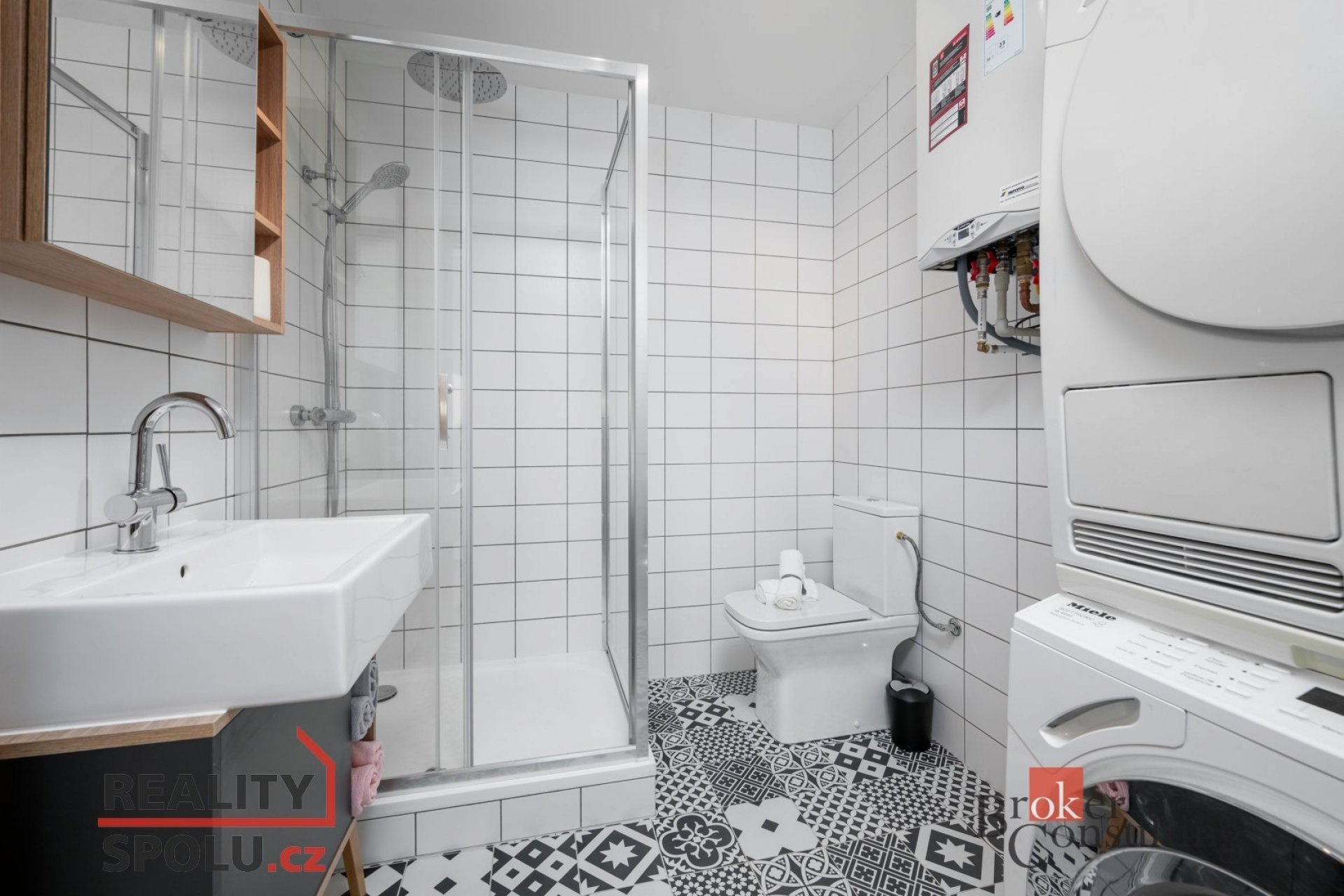 O vytápění a ohřev vody se stará samostatný plynový kotel umístěný v koupelně, kde je dostatek místa i na pračku a sušičku. Kromě osobních věcí se byt prodává kompletně zařízený, tedy většina vybavení, co naleznete na fotografiích je součástí nabídky. Vybavení bytu bylo minimálně využívané a je v bezvadném stavu.