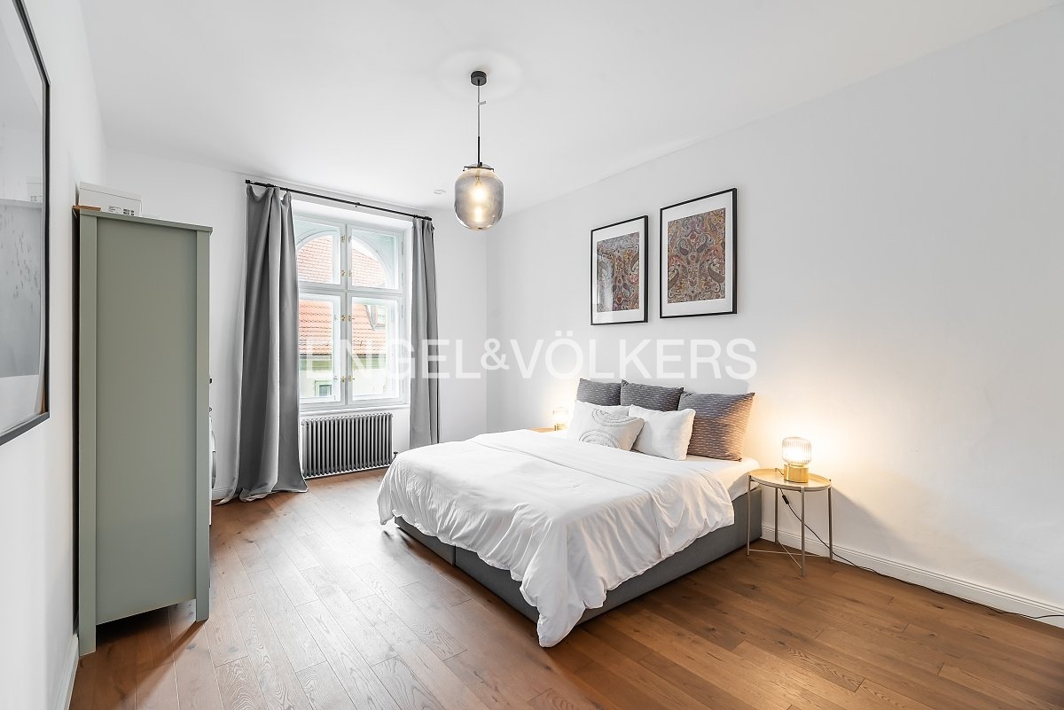 This 4+kt apartment offers peaceful living in Malá Strana with an interior usable area of 108 m2, located on the 2nd floor of a renovated apartment building with an elevator.