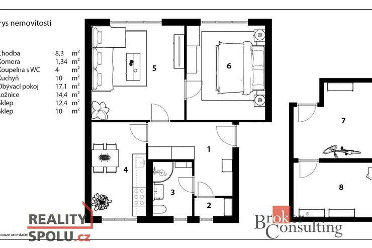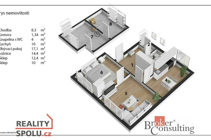 Byt disponuje obývacím pokojem, ložnicí, samostatnou kuchyní a koupelnou s WC. Je v dobrém technickém stavu, připravený k okamžitému užívání nebo k modernizaci dle vlastních představ. Velkým benefitem je zahrada - ideální pro relaxaci, pěstování či posezení, a také prostorný sklep o velikosti cca 20 m².