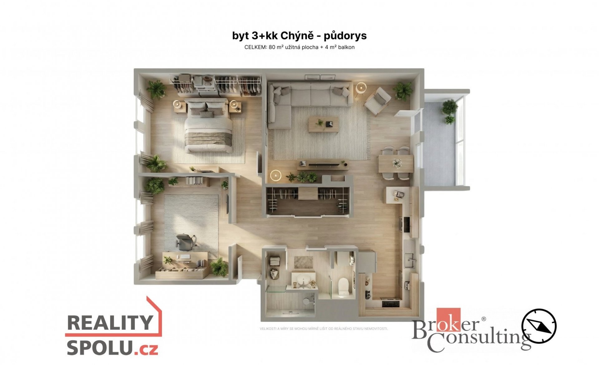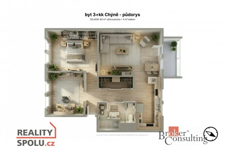Nabízíme ke koupi světlý a velmi příjemný byt dispozici 3+kk o podlahové ploše 79 m², umístěný v 1. nadzemním podlaží dvoupodlažního dřevěného